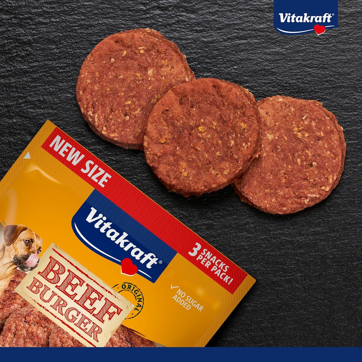 Fleischsnack im Burger-Format: Der Original-Burger von Vitakraft im praktischen 3er-Pack