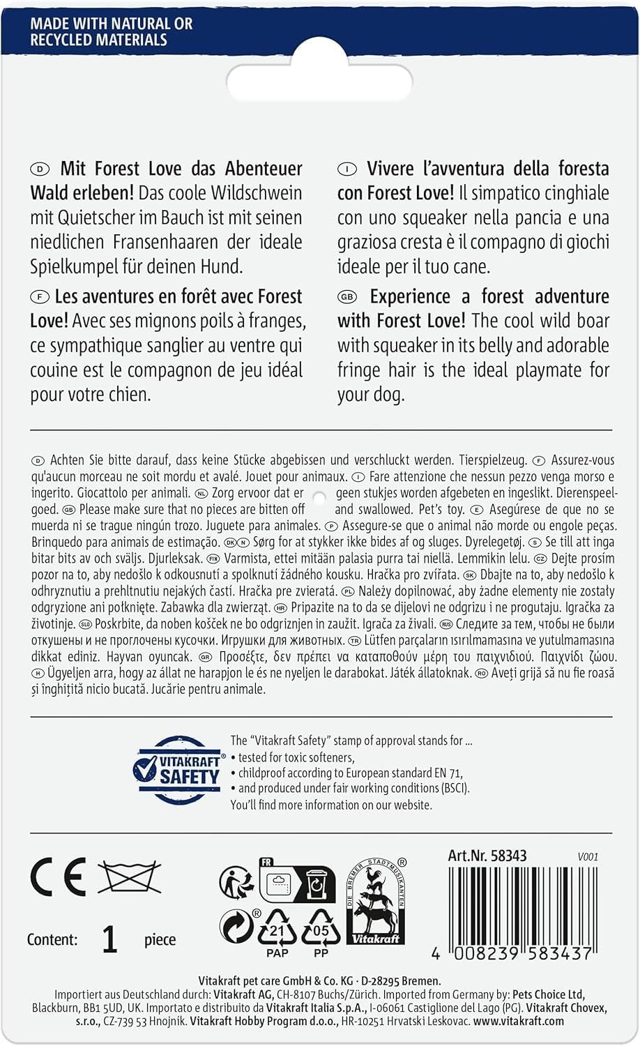 Cooles Wildschwein aus der Forest Love-Reihe: mit süßen Fransenhaaren, idealer Spielkamerad für jeden Hund