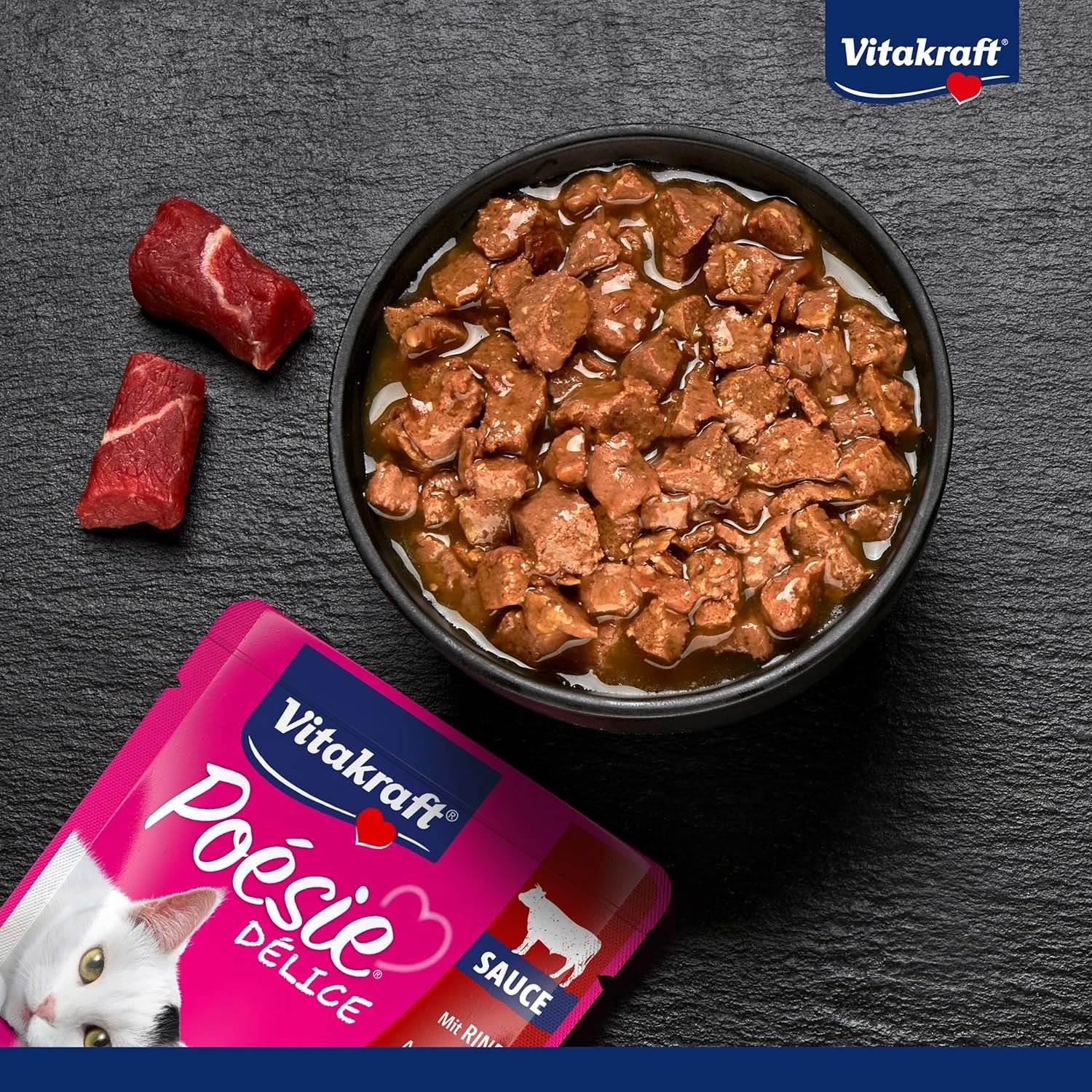 Hochwertiges Nassfutter für Katzen, mit natürlichen Fleischstücken