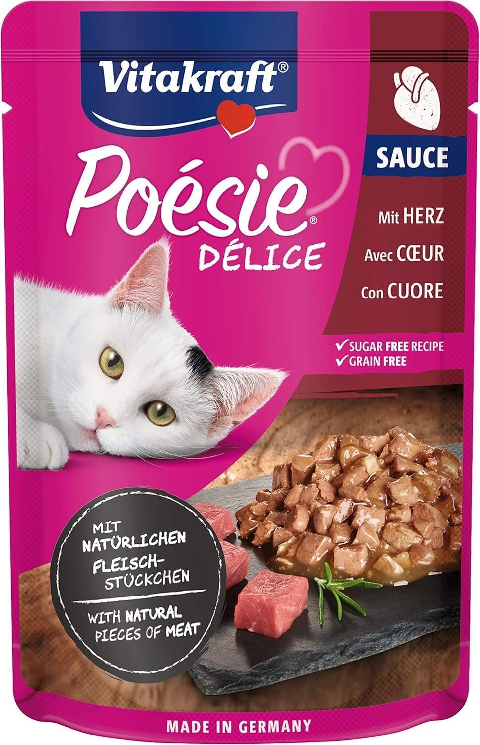 Hochwertiges Nassfutter für Katzen, mit natürlichen Fleischstücken