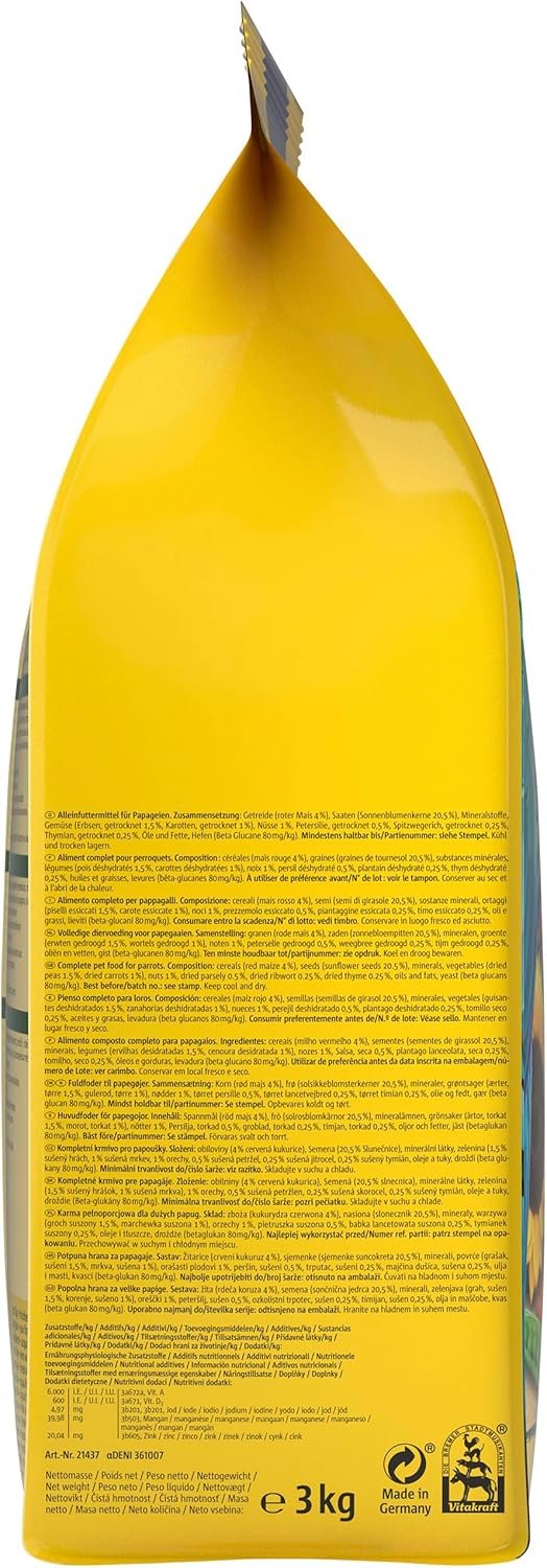 Hauptfutter für Papageien, mit wertvollem Getreide und Samen