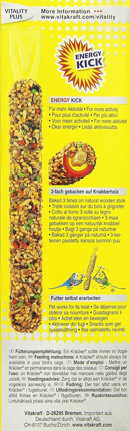 Original Vitakraft Cracker sind purer Geschmack und artgerechte Aktivität in einem. Denn an den knusprigen Knabberstangen müssen sich die Wellensittiche ihr Futter selbst zubereiten. Die raffinierte Futtermischung ist nach zuckerfreier Rezeptur zusammengestellt und speziell auf Wellensittiche abgestimmt. Das dreimalige Backen in der hauseigenen Vitakraft-Bäckerei garantiert den Tieren extra langen Knusperspaß – das Knabberholz im Inneren der Mischung hilft zudem bei wichtigem Schnabelabrieb.