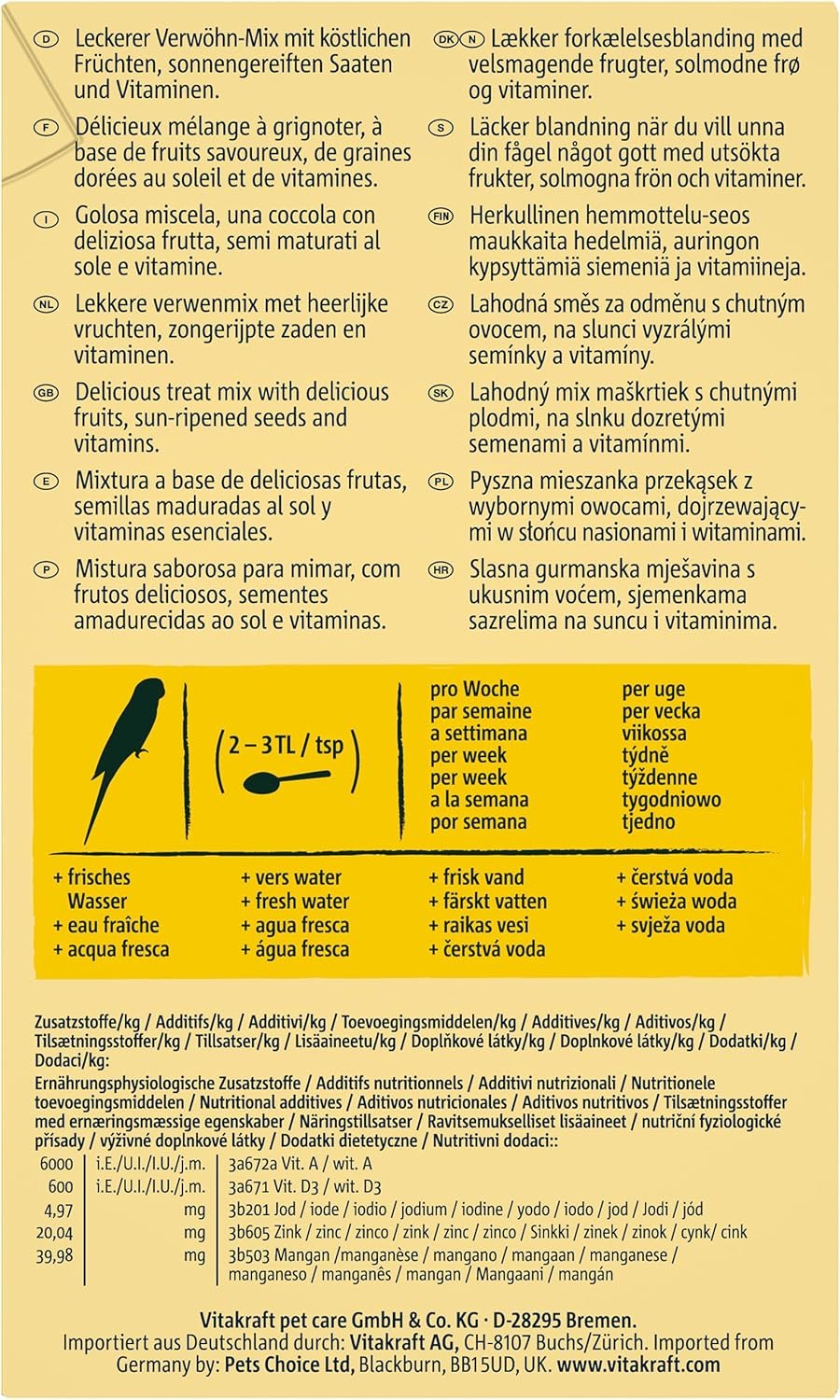 VITAKRAFT Fruchtcocktail für Wellensittiche in der Natur, die Vögel ernähren sich nicht ausschließlich von Samen, sondern müssen auch die Nährstoffversorgung ergänzen.