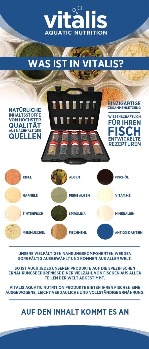 Qualität: Unsere Vitalis Tropical Pellets werden aus hochwertigen Rohstoffen mit modernsten Fertigungsmethoden hergestellt. Das perfekte Fischfutter für Ihre Süßwasserfische. Ob Aquarium oder Teich.