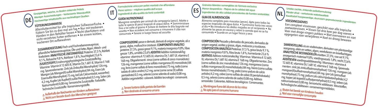 Klare Farben: Die natürlichen Inhaltsstoffe sorgen für gesunde Farben und sichtbar mehr Vitalität, ohne das Wasser im Aquarium zu trüben. So haben Sie auch nach dem Füttern eine klare Sicht. Das Fischfuttergranulat ist so konzipiert, dass es langsam im Wasser sinkt. Dadurch kann das natürliche Fresserlebnis der Fische gefördert werden.
