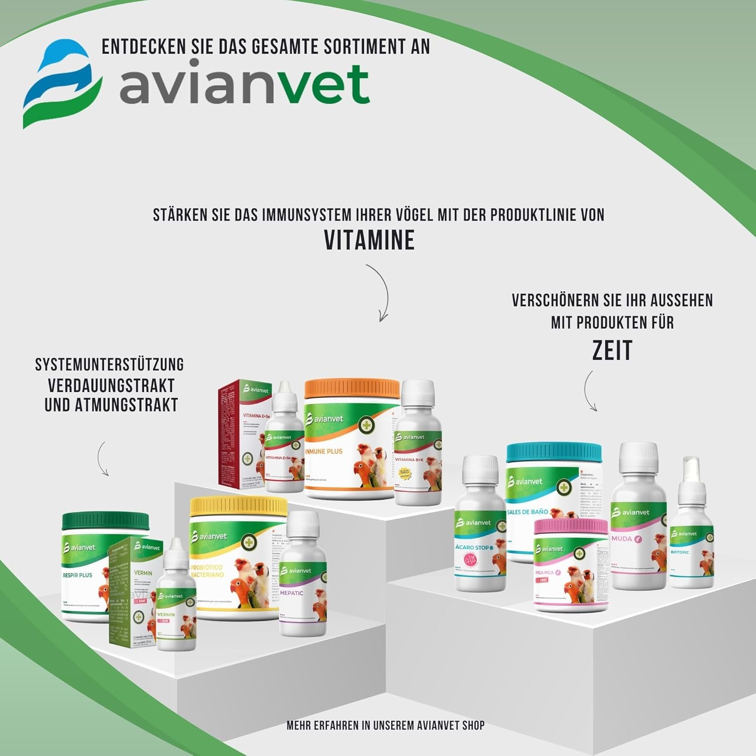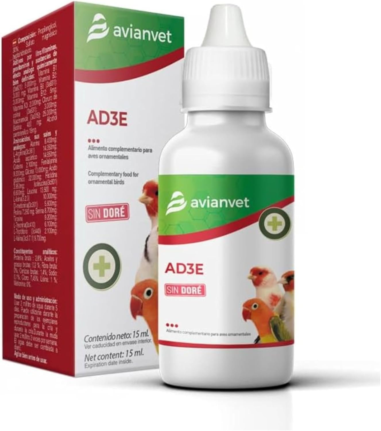 AD3E Ohne Doré Avianvet eignet sich zur Vorbereitung von Jungvögeln vor und während der Fortpflanzungsphase zur Verbesserung der Fruchtbarkeit von Mann und Frau sowie in der Vorbeugung oder bei Bedarf. die Korrektur von Mängeln der Vitamine A, D3 und E, insbesondere im Zusammenhang mit Fortpflanzungsstörungen. Carotinoidfrei. Kein „Gold“-Effekt. Hinweise: Packung mit 100 ml und 1 Liter.