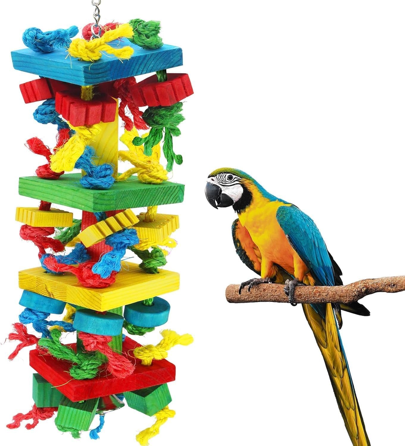 Perfekte große Größe: Die Größe des Papageien-Kauspielzeugs beträgt 21,7 x 5,9 Zoll. Seine perfekte Größe ist ideal für mittelgroße und große Vögel. Es wird für Graupapageien, Mini-Aras und eine Vielzahl von Amazonas-Papageien empfohlen.