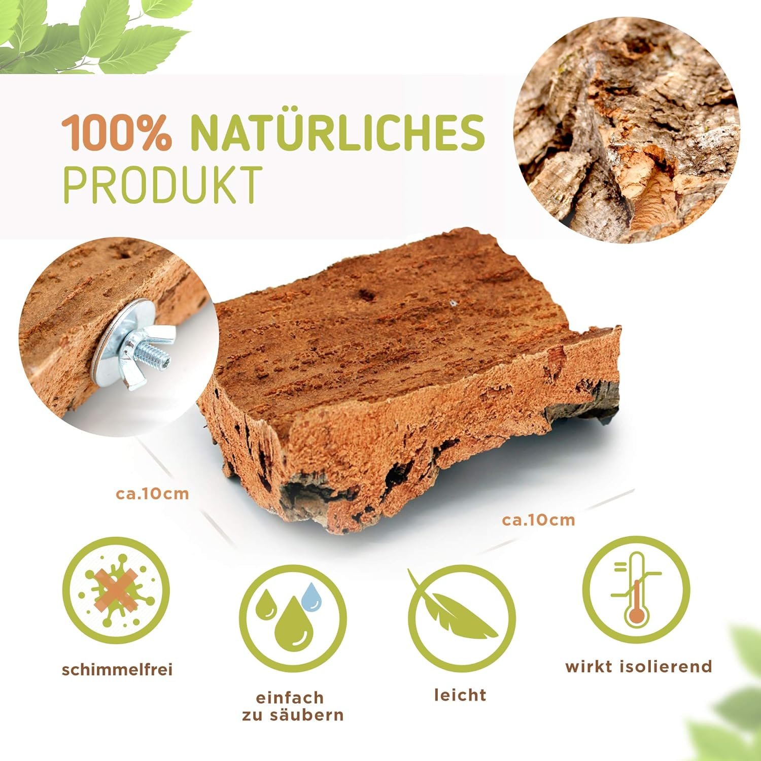 Kork schimmelt nicht und lässt sich schnell und einfach nass reinigen, sodass Sie immer ein hygienisches Vogelspielzeug haben