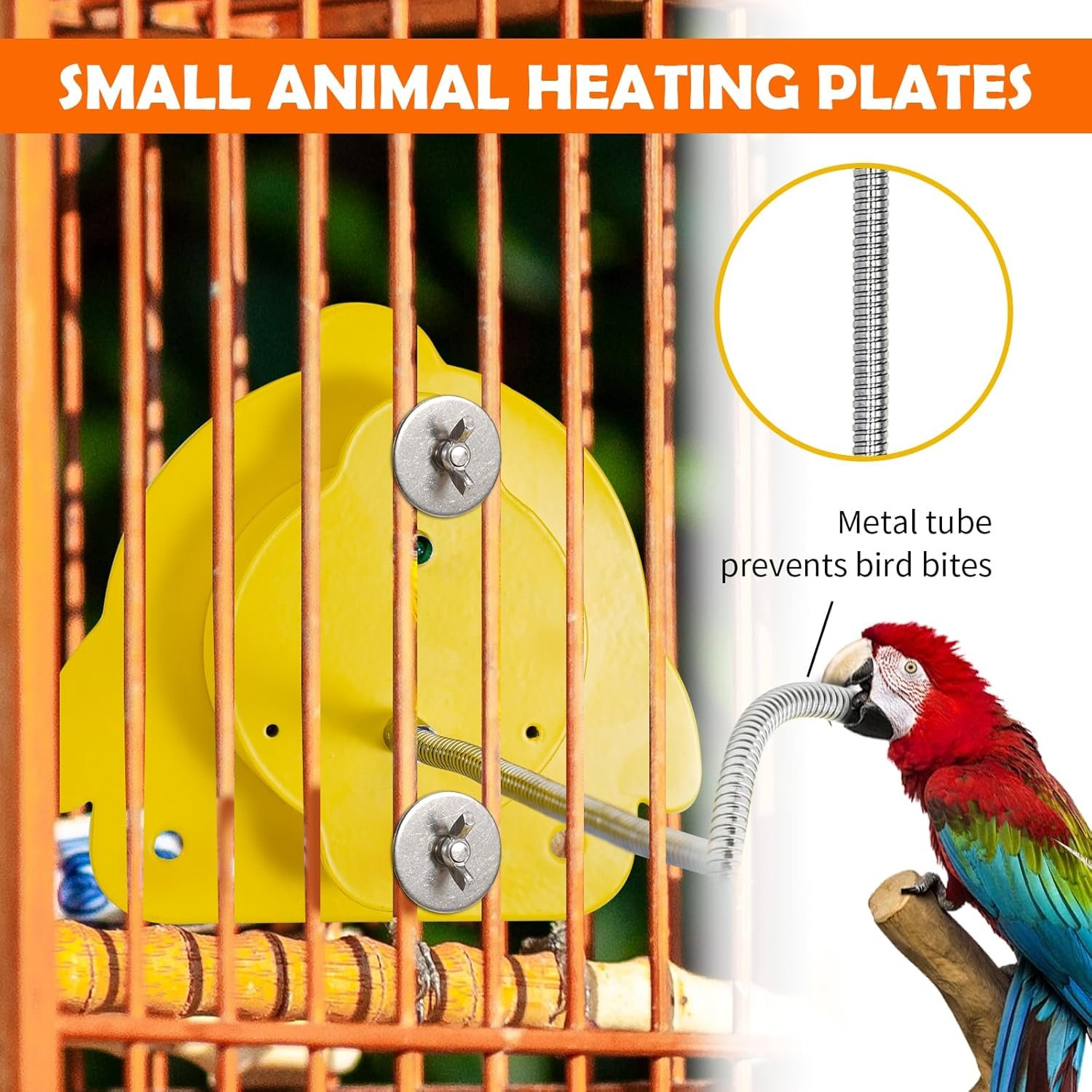 Thermostatische Vogelheizplatte: Der Vogelkäfigwärmer verfügt über einen eingebauten Heizstreifen, der es ermöglicht, die Oberflächentemperatur der Heizplatte gleichmäßig zu halten, und die Temperatur kann bei etwa 42 °C gehalten werden, was Ihrem Haustier hilft, den kalten Winter zu überstehen.