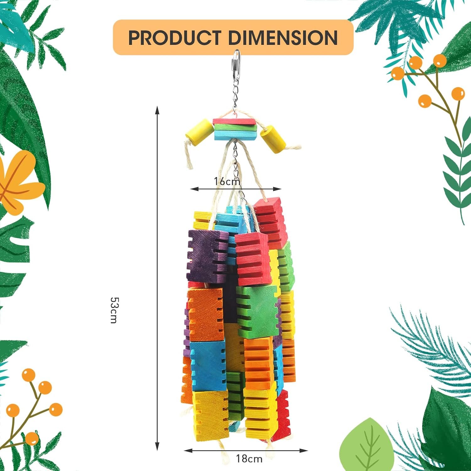 ✔ ✔ 【8-teiliges Design】 Größe: 5,9 x 19,7 Zoll, Papageienspielzeug besteht aus 8 einzigartigen, farbenfrohen, geschlitzten Holzblöcken, die an Metallketten befestigt sind, mit mehreren Schichten, um den Papagei zum Klettern und Erkunden zu ermutigen. Holzklötze in verschiedenen Formen sind langlebig und können verwendet werden, um den Schnabel der Vögel zu pflegen und die Gesundheit Ihres Haustieres zu fördern.