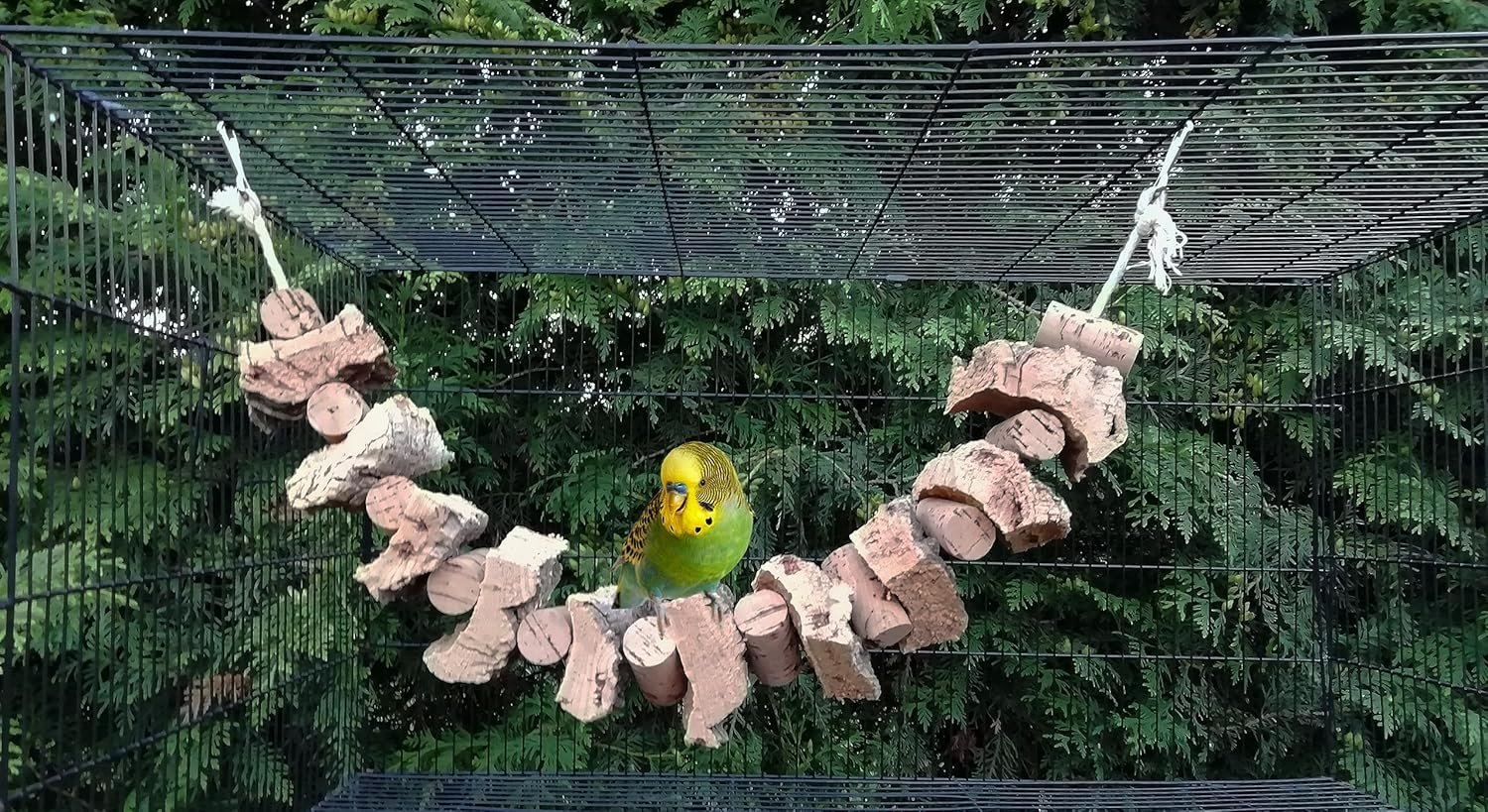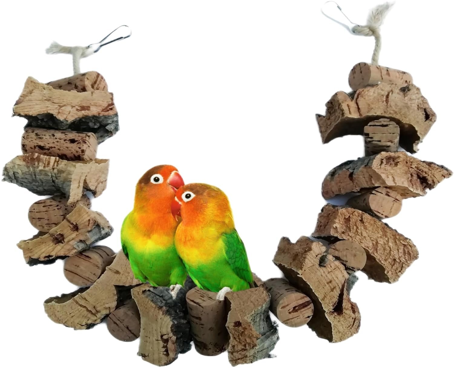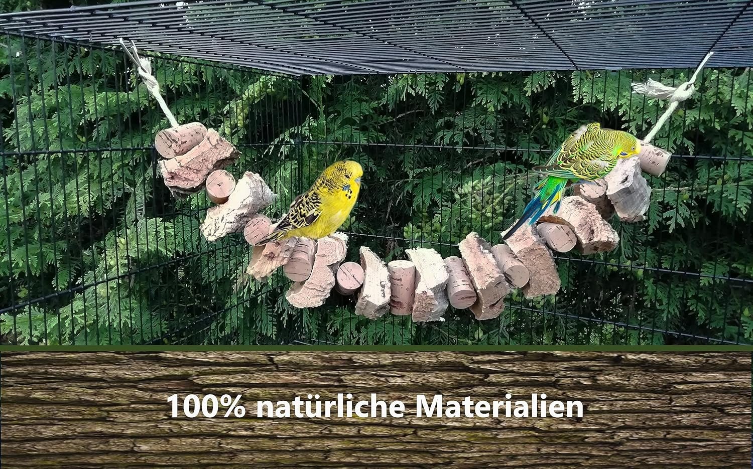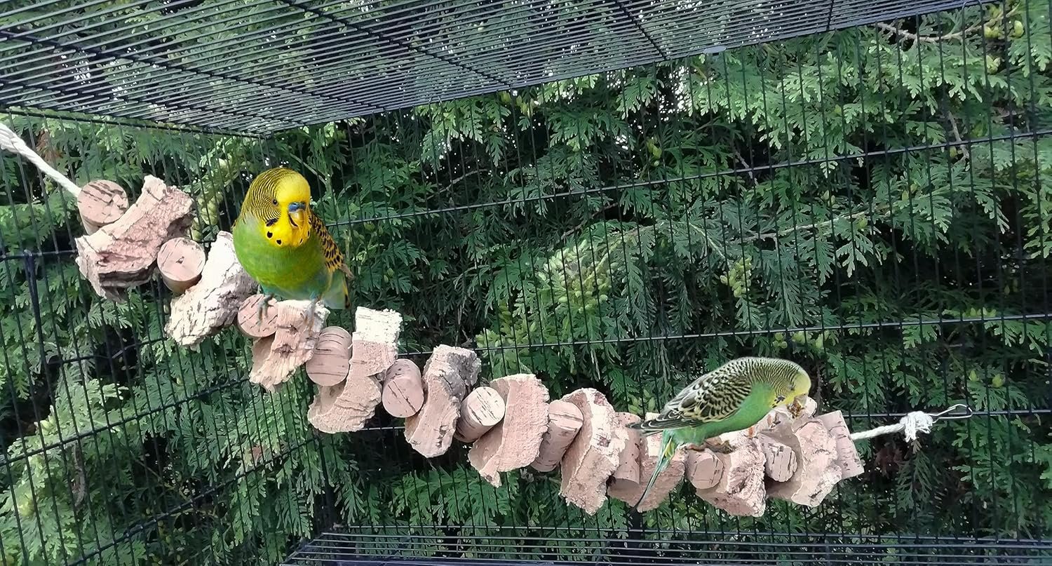 Großes Schaukel-/Knabberseil mit vielen großen Korkstücken und Naturkorken mit Baumwollkordel zum Spielen, Schaukeln und Knabbern. Mögliche Moosanhaftungen, die sogenannten Flechten, lasse ich bewusst auf der Korkrinde, was Vögel neugierig macht und zum Knabbern einlädt. Korkrinde ist ein absolutes Naturprodukt, liefert viele Mineralien, ist schimmelresistent und völlig unbedenklich. Gesamtlänge: ca. 70 cm. Noch mehr tolles Vogelspielzeug? Klicken Sie einfach auf den Verkäufer, Vogelträume, und besuchen Sie mein Schaufenster.