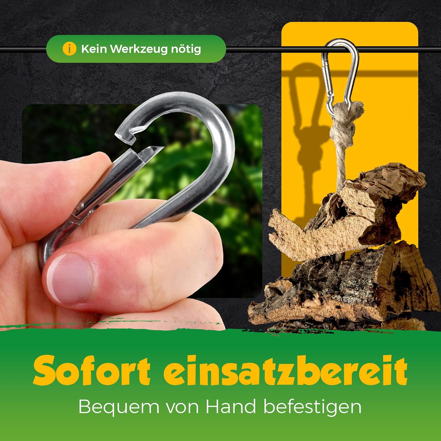 Einfache Montage – Dank der beiden bereits montierten Karabiner lässt sich die Schaukel schnell und einfach befestigen. Einfach in die Gitter einhängen und schon kann es losgehen. Aufgrund der Länge von ca. Die Länge von ca. 40 cm garantiert langanhaltenden Knabberspaß