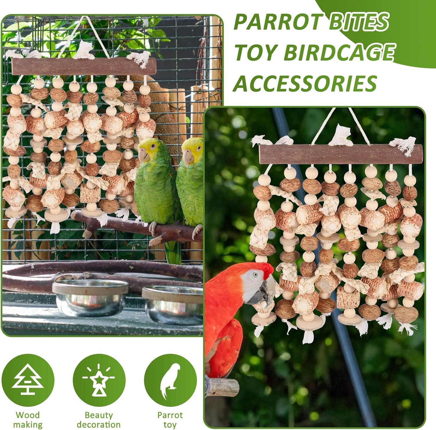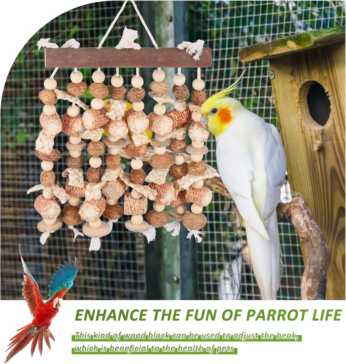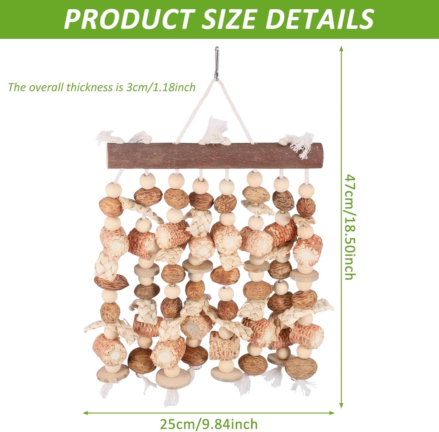 HOCHWERTIGES MATERIAL: Dieses Vogelkauspielzeug ist aus Naturholz gefertigt und daher besonders kaubeständig und langlebig. Es fördert die natürliche Abnutzung des Schnabels Ihres Papageis, verhindert übermäßiges Wachstum und erhält so die Schnabelgesundheit