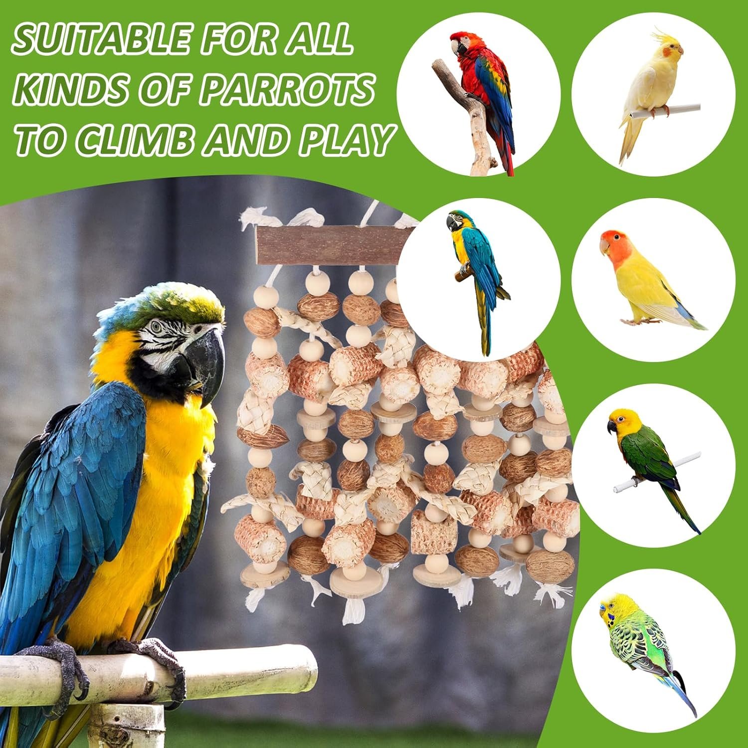 [5] Vielseitig einsetzbar: Ideal zum Kauen, Klettern und Spielen mit verschiedenen Papageienarten, darunter Aras, Graupapageien, Kakadus, Wellensittiche und Sittiche. Es erfüllt die vielfältigen Bedürfnisse von Vögeln