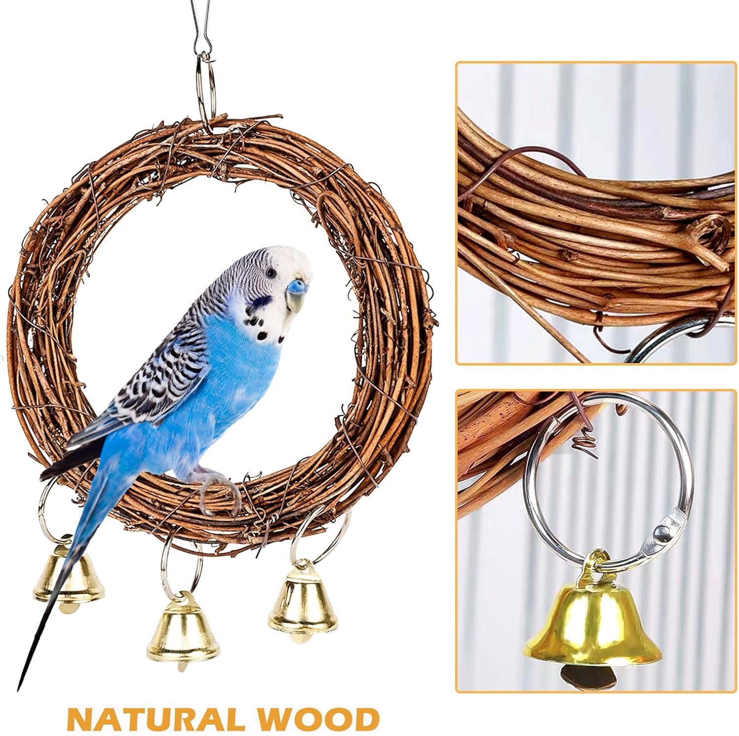 Jedes Vogelspielzeug ist mit einem ausreichend großen und langen, beweglichen Haken ausgestattet, der für die meisten Käfige geeignet ist. Der Stahlhaken lässt sich leicht am Käfig befestigen.
