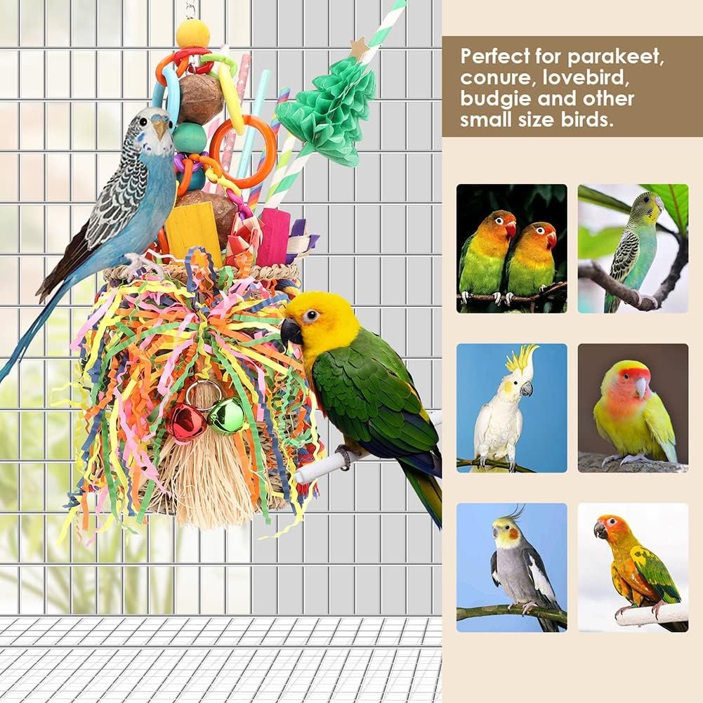 Du bekommst YIXUND Vogel Seegras Futter Korb Spielzeug YIXUND Bird Toys Halten Sie Ihr Bird beschäftigt Sie wird das bunte knitternde Papier und andere Spielzeuge mehr genießen als das Zupfen YIXUND Vogelspielzeug sättigt ihren natürlichen Kaudrang, bietet wesentliche körperliche Aktivität.