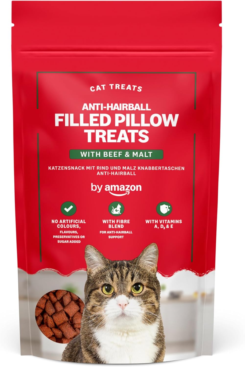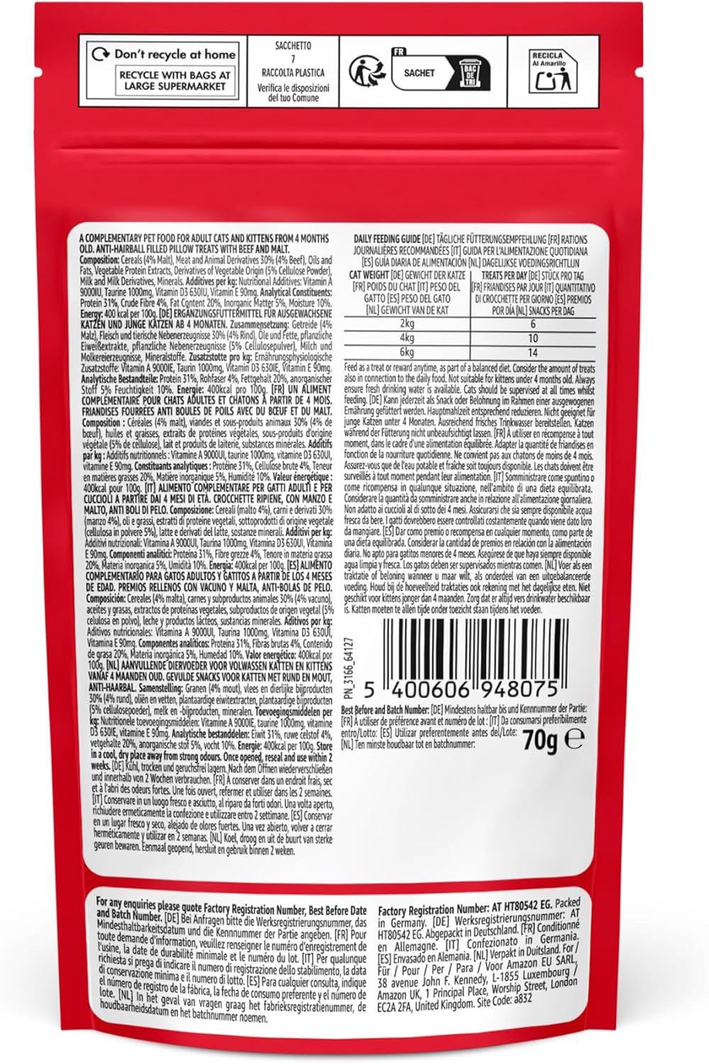 von Amazon Cat Treats – Anti-Haarball-Kissen, Rindfleisch und Malz, 70 g