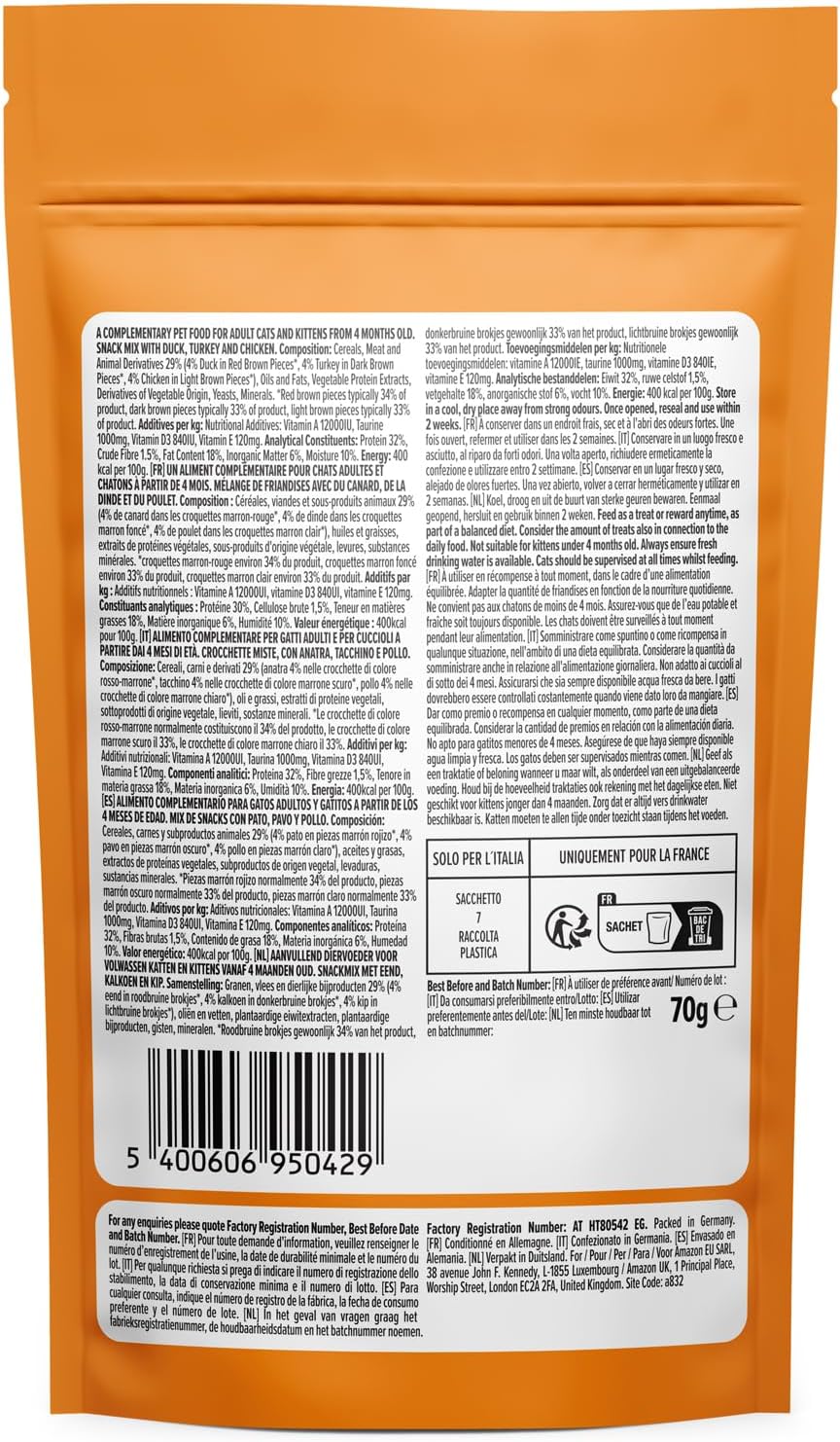 von Amazon – Katzensnacks – Mischung mit Ente, Truthahn und Huhn, 70 g