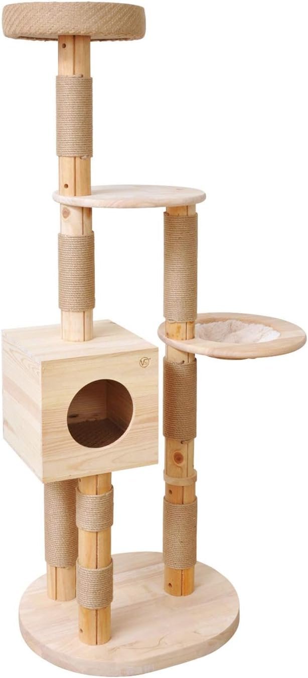 UNTERHALTUNG FÜR DIE HAUSKATZE: Kratzbaum aus Holz zum Krallenschärfen, schützt Möbel und Teppiche