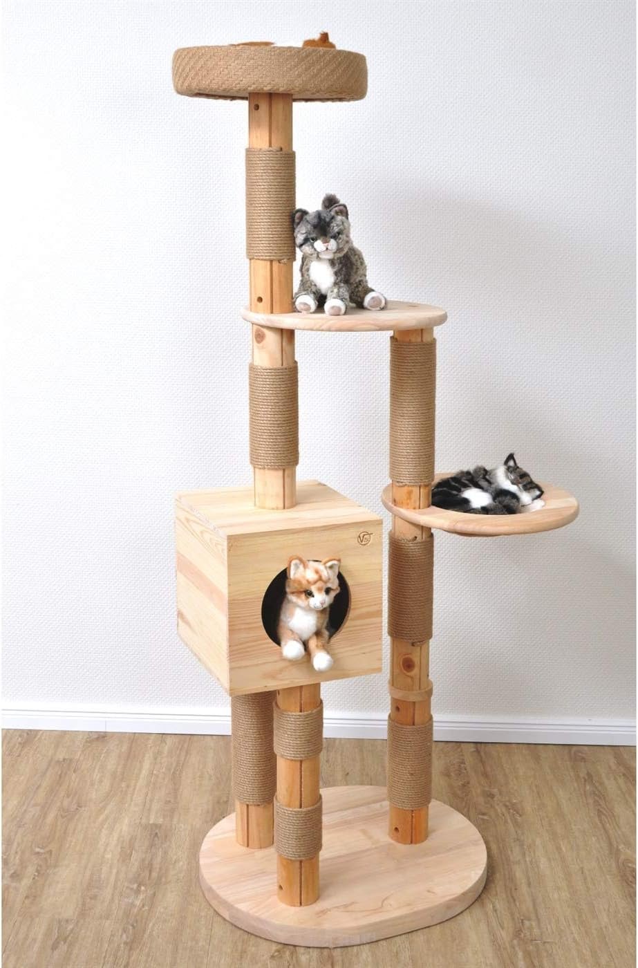 NATÜRLICHE MATERIALIEN: Kratzbaum aus unbehandeltem Massivholz mit Juteseil, hochwertig verarbeitet