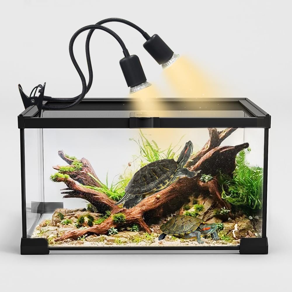 1. Diese Schildkröten-Wärmelampe enthält eine doppelte 50-W-Wärmelampe, die das natürliche Sonnenlicht nachahmt und Reptilien täglich mit UVA- und UVB-Strahlung versorgt.