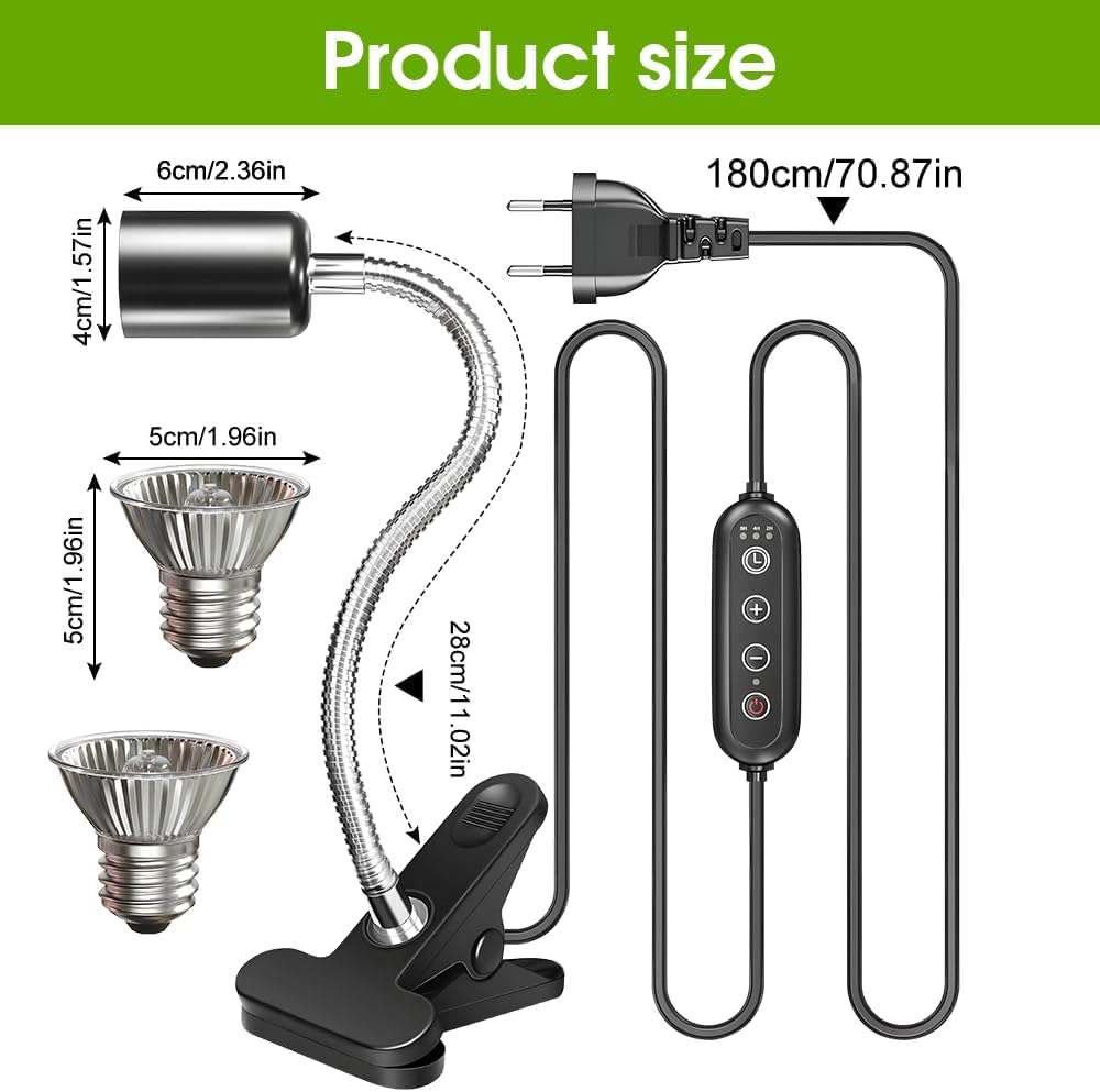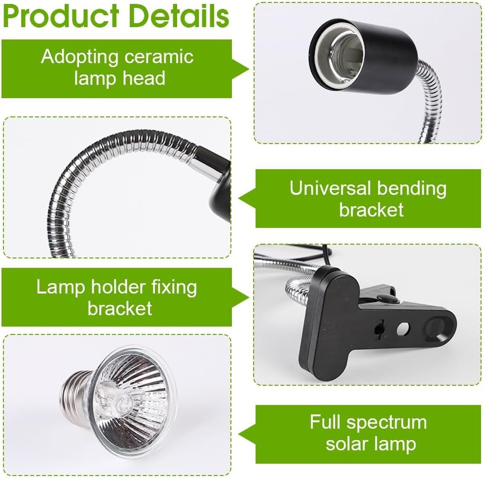 Der E27-Lampensockel kann mit Glühlampen, Heizgeräten, UV-Lampen, Infrarotstrahlern usw. verwendet werden. Diese Wärmelampe ist für Schildkröten, Amphibien, Vögel, Küken, Fische, Säugetiere oder einige Pflanzen geeignet.