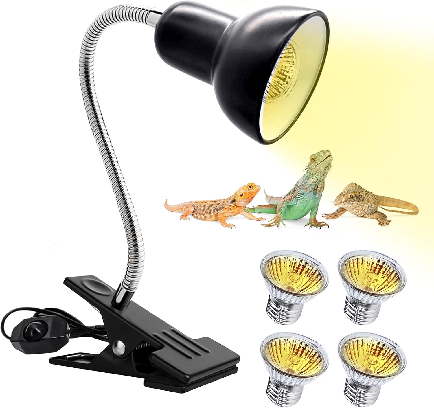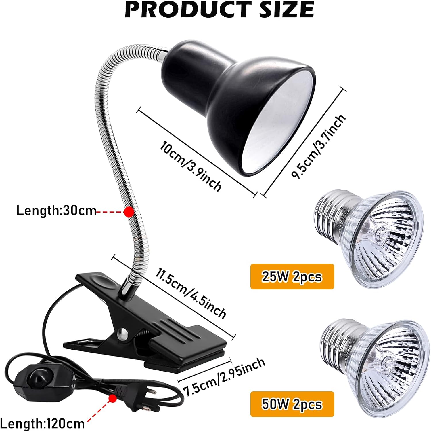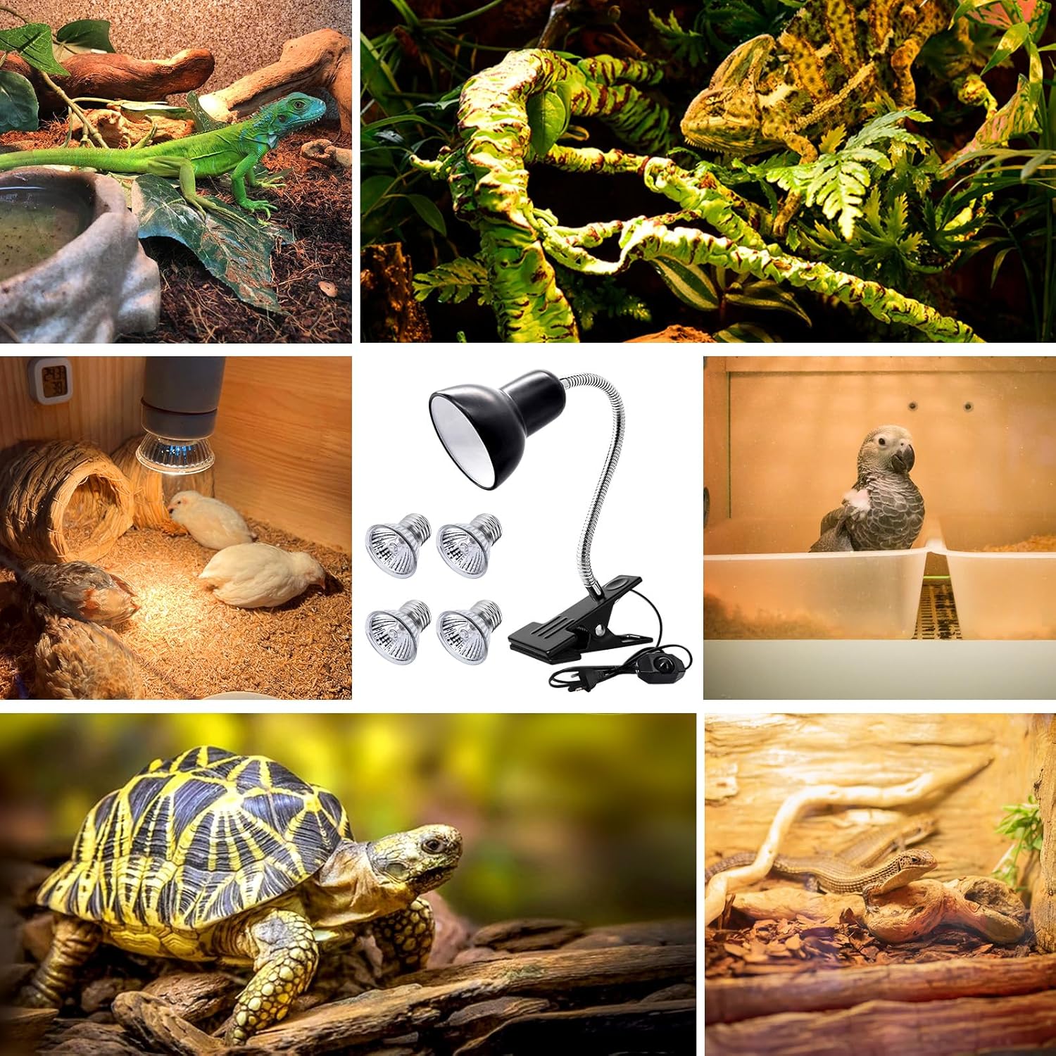Wärmelampe Schildkröten, Terrarienlampe, Reptilien-Wärmelampe mit 2 Reptilien, Heizlampe, Wärmelampe, Terrarium mit Metall-Schwenkklemme für Schildkröten, Eidechsen