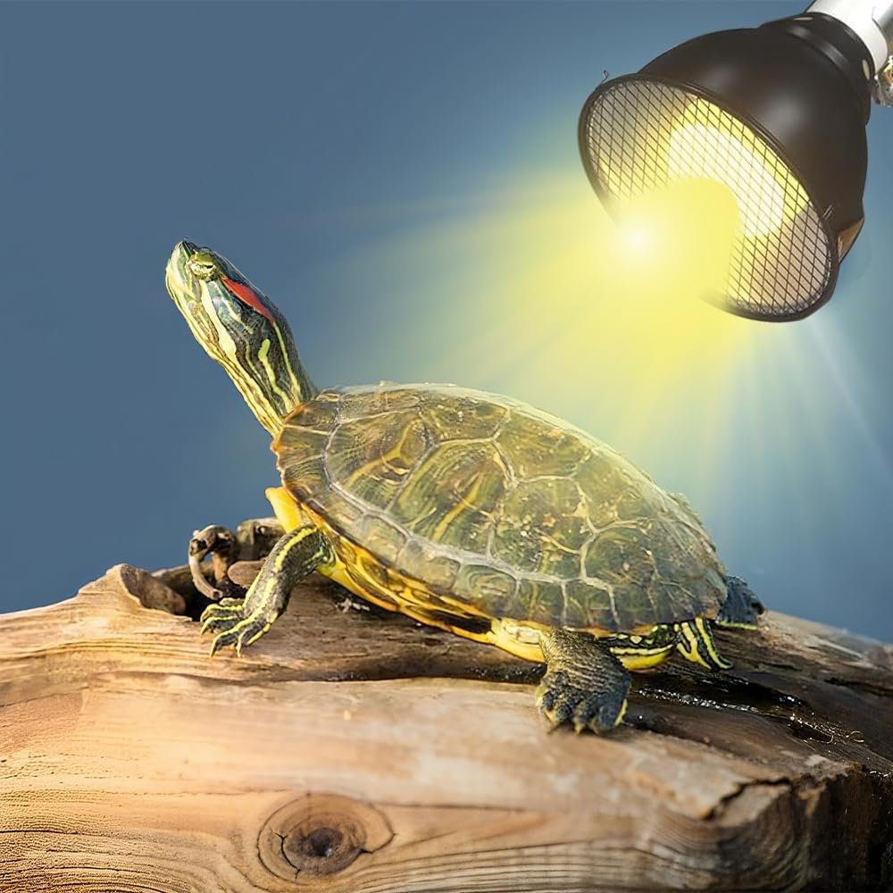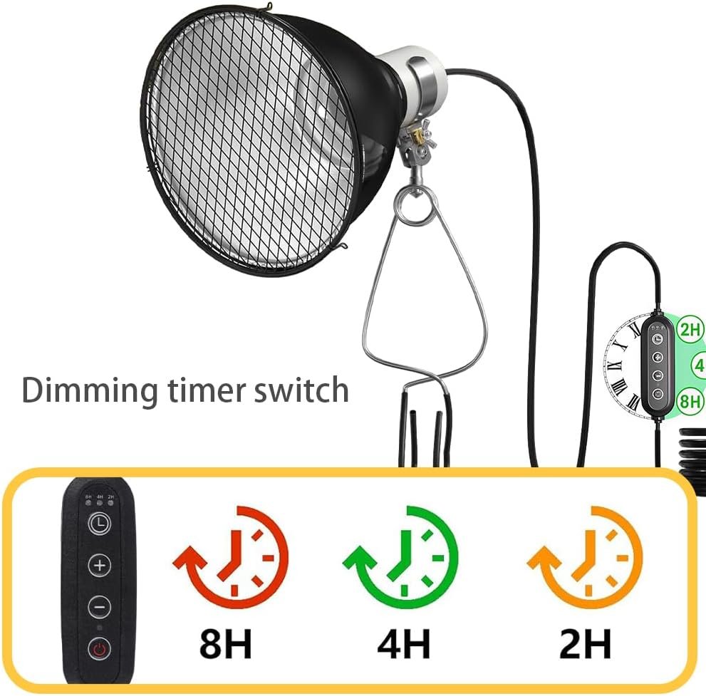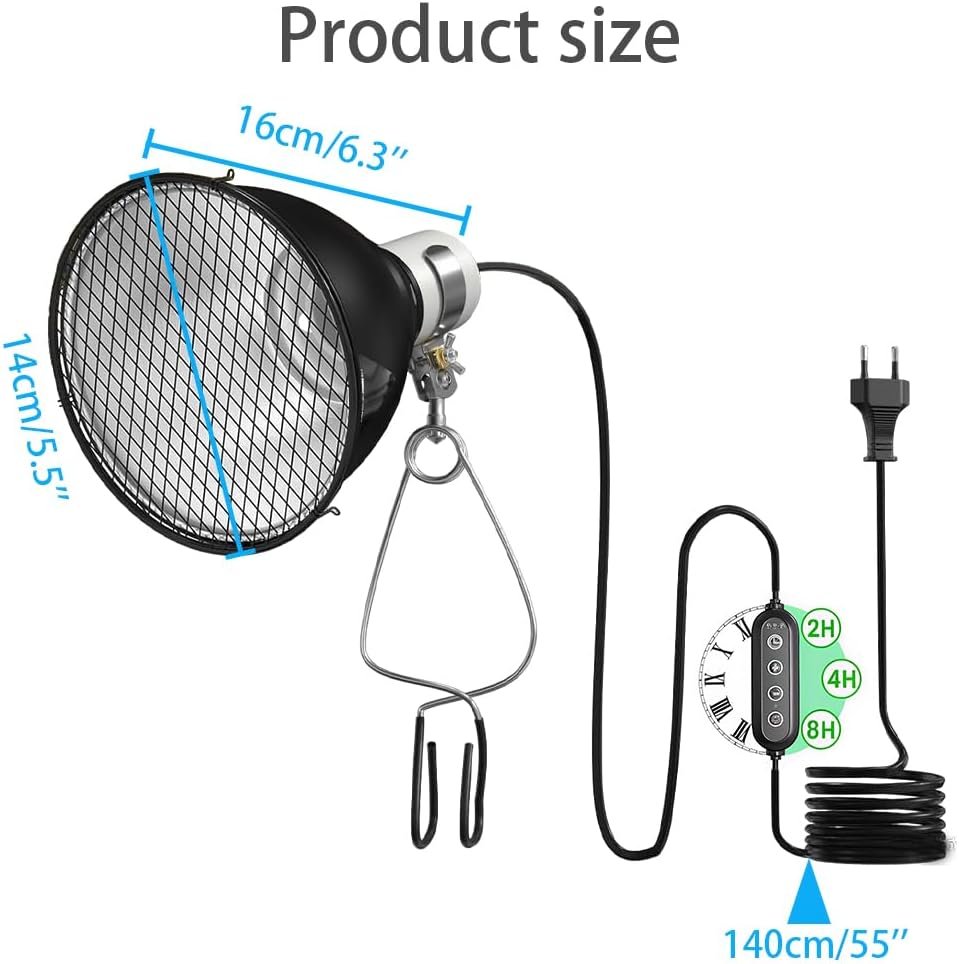 Wärmelampen-Terrarium mit Schutzkorb und Timer, Wärmelampen-Schildkröten mit Steckdose mit EU-Stecker, Lampe mit Dimmer-Infrarot, UVA-UVB-Lampen, ohne Glühbirne für Terrarien für Schildkröte, Chamäleon.