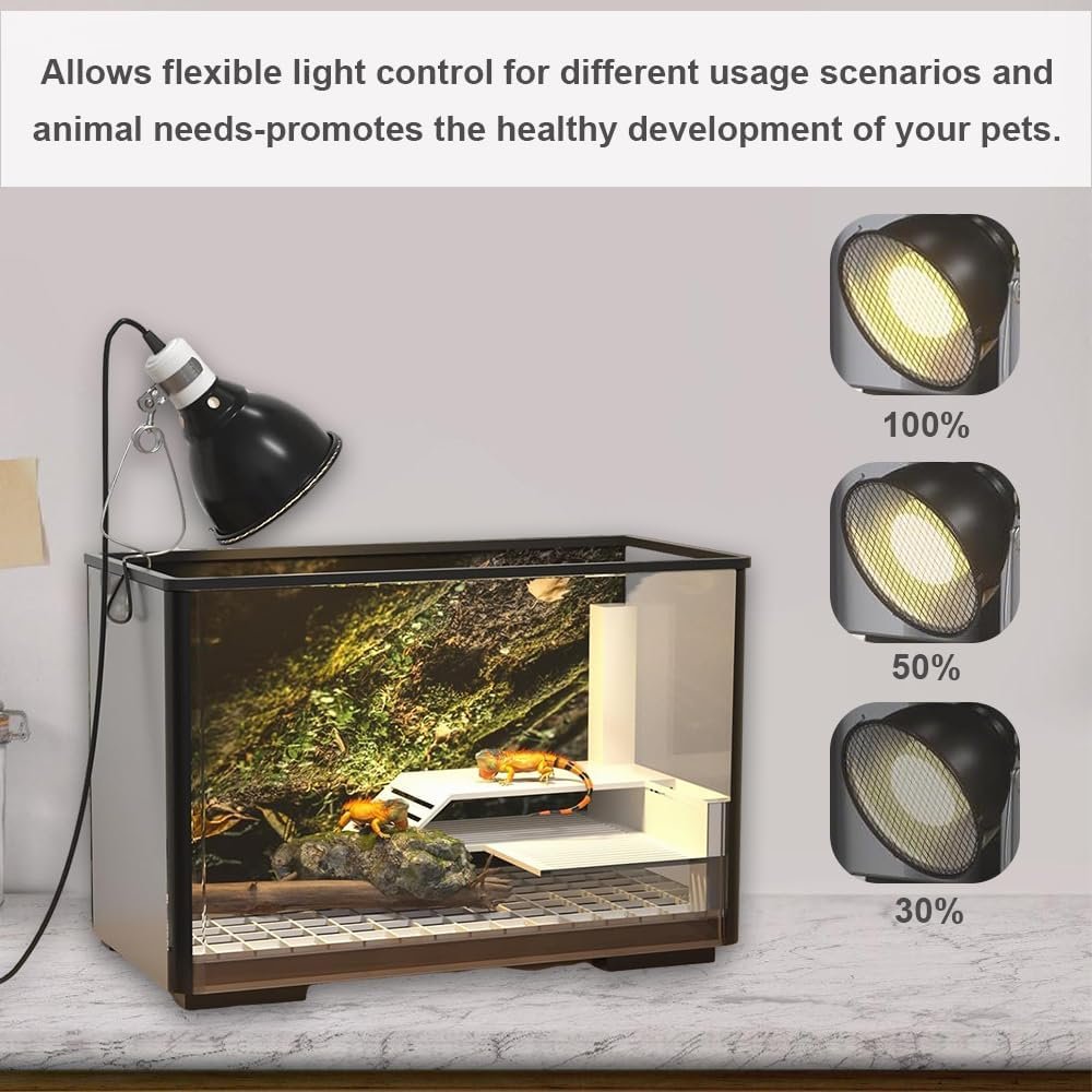 1. Die Reptilien-Terrarium-Kuppellampenfassung E27 überzeugt durch einfache Installation und Pflege. Das 200 W 5,5 Zoll Wärmelampen-Terrarium ist schnell einsatzbereit und UVA-UVB-Lampen lassen sich problemlos kombinieren. Mit der Reptilien-Terrarium-Kuppellampenfassung E27 haben Sie eine Lösung, die die 200 W 5,5 Zoll Wärmelampe im Terrarium stabil fixiert und UVA-UVB-Lampen dauerhaft unterstützt. Dieses durchdachte Design macht die Pflege von Reptilien und die Verwendung der Reptilien-Terrarium-Kuppellampenfassung E27 besonders komfortabel.