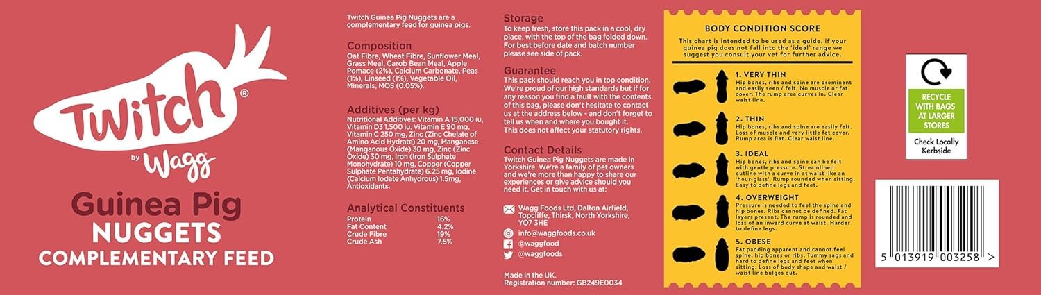 Wagg Twitch Meerschweinchenfutter, 10 kg, Ergänzungsfutter Nuggets