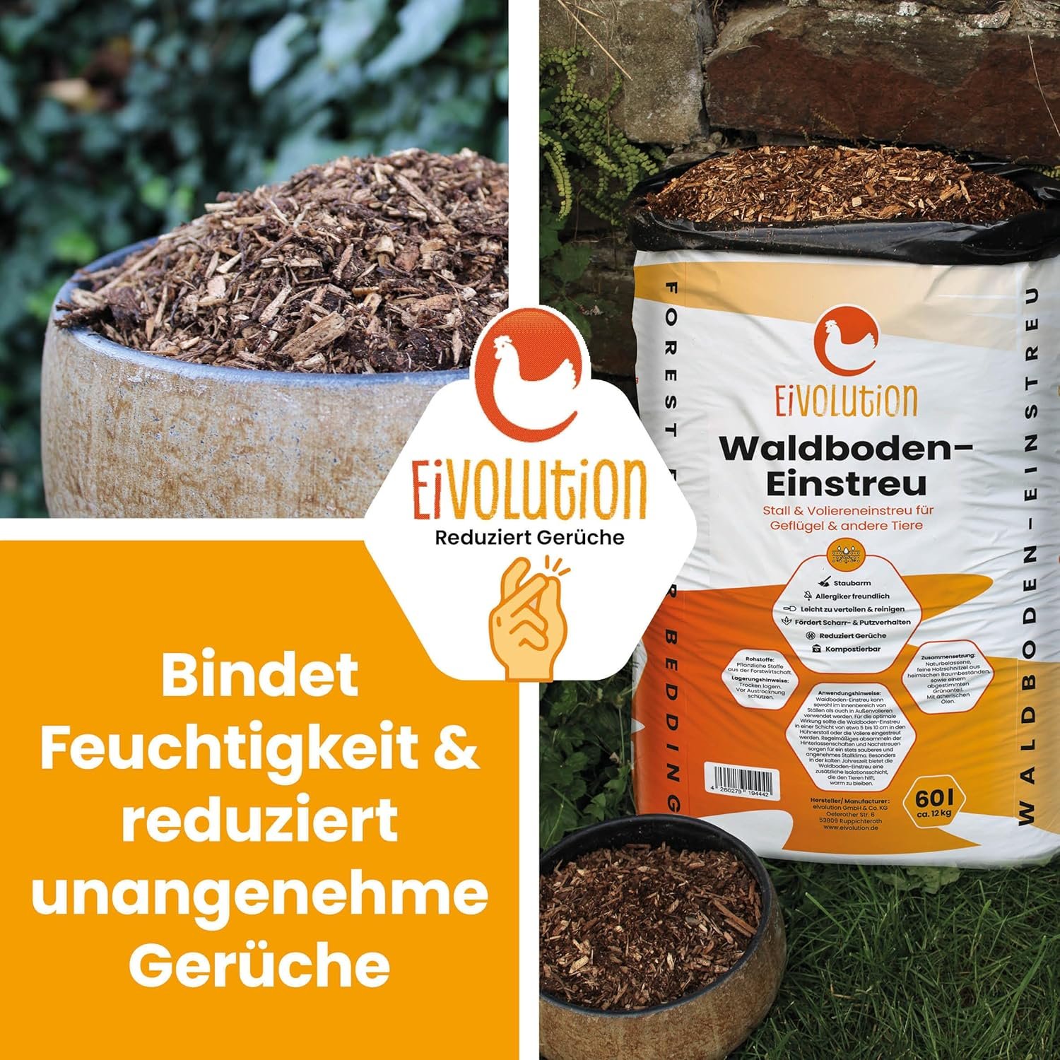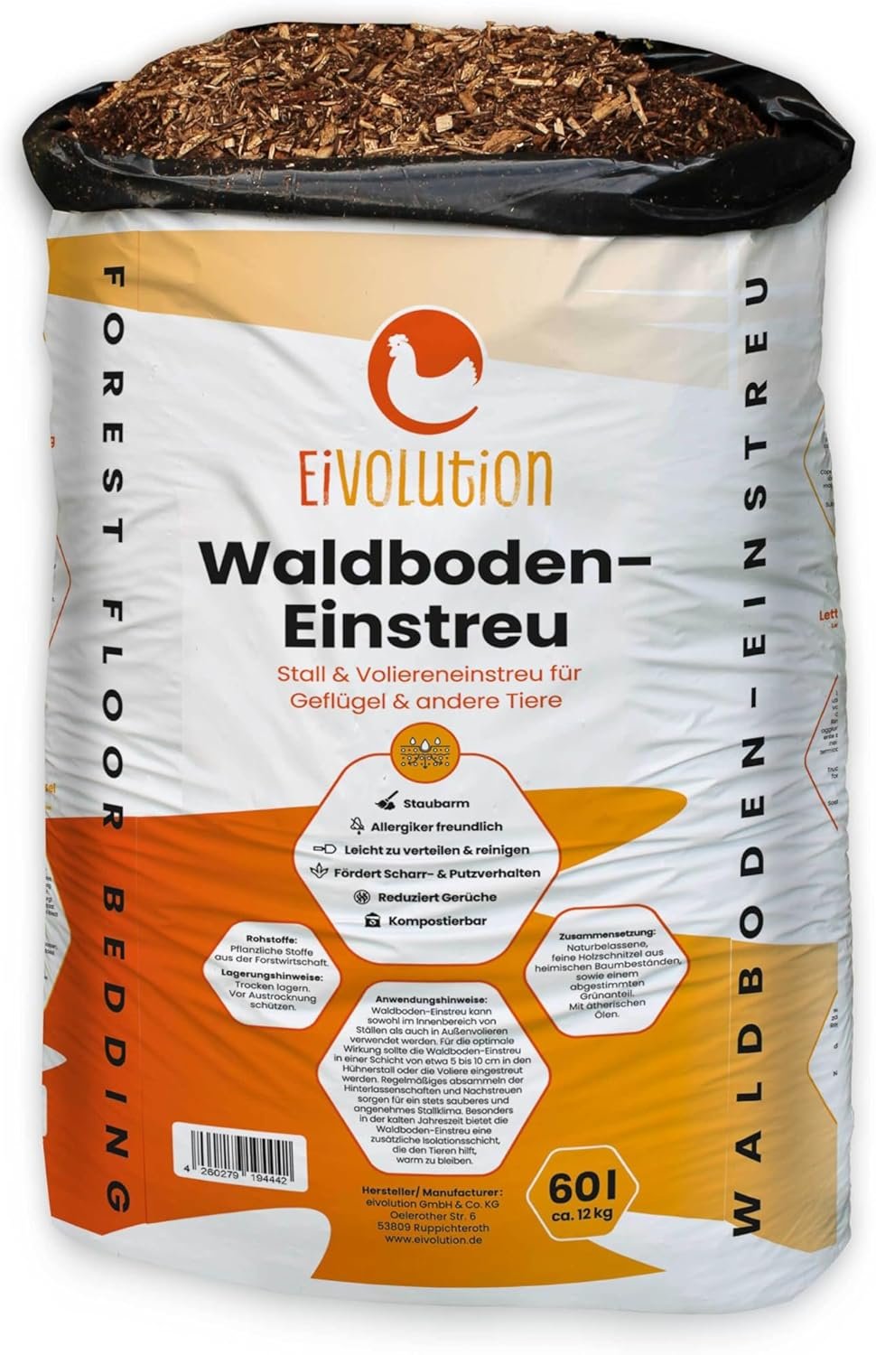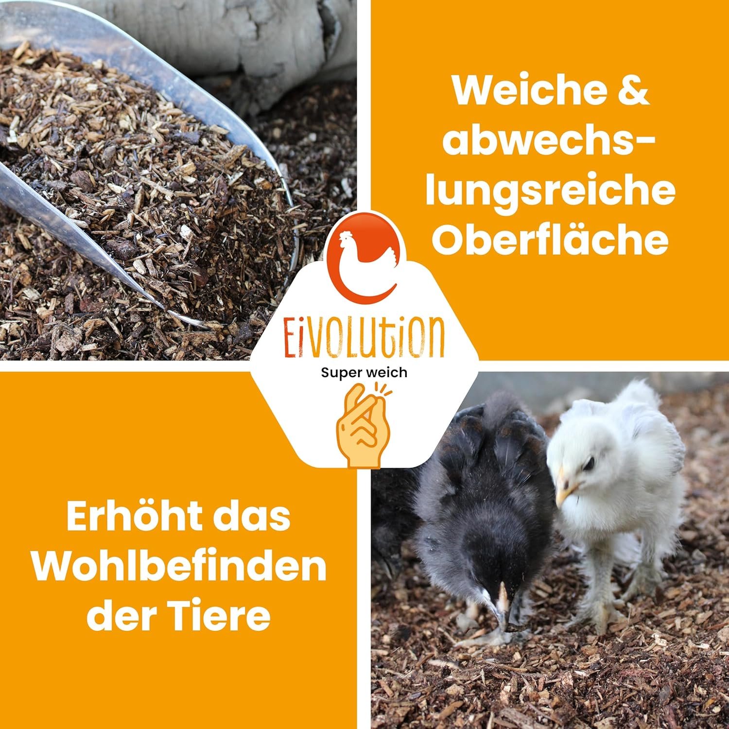 BREITE ANWENDUNGSMÖGLICHKEITEN Ideal für Hühner sowie andere Geflügelarten wie Enten und Geflügel. Es schafft eine natürliche, beruhigende Umgebung für alle Tiere.