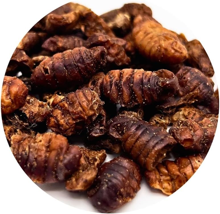 Seidenraupen | Seidenraupen eignen sich zur Intensivierung und Erhaltung der natürlichen Färbung, hoher Proteingehalt für kräftiges Wachstum, ideale Nahrungsergänzung auch für Schildkröten, ohne künstliche Konservierungsstoffe. Seidenraupenpuppen in exklusiver Qualität – für Wachstum und Verbesserung von Haut und Farbe. Beziehungsfördernd durch Handfütterung. Seidenraupenpuppen fördern durch die enthaltenen essentiellen Amino- und mehrfach ungesättigten Fettsäuren einen gesunden Stoffwechsel und stärken so das Immunsystem. Die Farbintensität der Koi wird verbessert und der Glanz erhöht. Es ist ein Futter für Koi und Teichfische. Fütterungsempfehlung: ab 16 °C Wassertemperatur als Snack nach Bedarf. Analytische Bestandteile in %: Rohprotein: 56, Rohfett: 28, Rohasche: 3,4, Rohfaser: 5 | 100 % natürliches Futter in höchster Qualität – ein ganz besonderer Genuss für Ihre Koi. | 1 Liter getrocknet. Seidenraupen wiegen ca. 330 g
