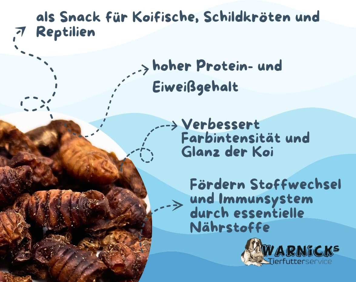 Warnick´s Tierfutterservice Seidenraupen getrocknetes Koifutter Reptilienfutter Schildkrötenfutter (3 Liter)