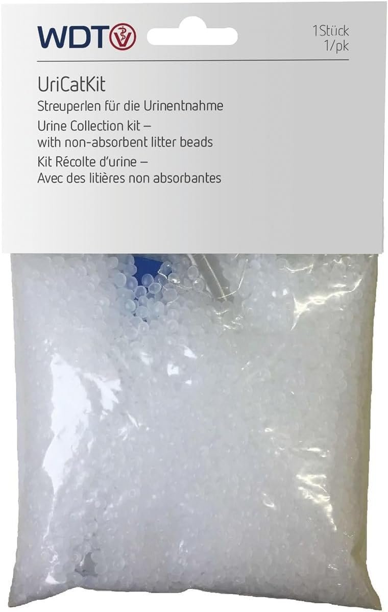 Bei der speziellen Katzenstreu von UriCat handelt es sich um Streukügelchen aus Kunststoff, mit denen Urinproben direkt aus der Katzentoilette entnommen werden können. Durch die einfache Handhabung kann der Urin von Katzen schnell und einfach gesammelt werden, um ihn zur Untersuchung zum Tierarzt zu bringen. Zur Aufnahme der Probe können die mitgelieferten Pipetten verwendet werden. Darüber hinaus sind verschließbare Probenröhrchen im Lieferumfang enthalten. Der gesammelte Urin kann sicher in die Tierarztpraxis gebracht werden. Das Produkt UriCat Spezial-Katzenstreu von WDT kann zu einer besonders hohen Probenrückgewinnung beitragen. Kann der Urin nicht sofort zur weiteren Verarbeitung in die Tierarztpraxis gebracht werden, sollte er im Kühlschrank aufbewahrt werden. Zu langes Stehenlassen des Urins kann zu einem verfälschten Ergebnis führen. Daher ist es wichtig, die Probe so schnell wie möglich nach der Entnahme in die Praxis zu bringen.