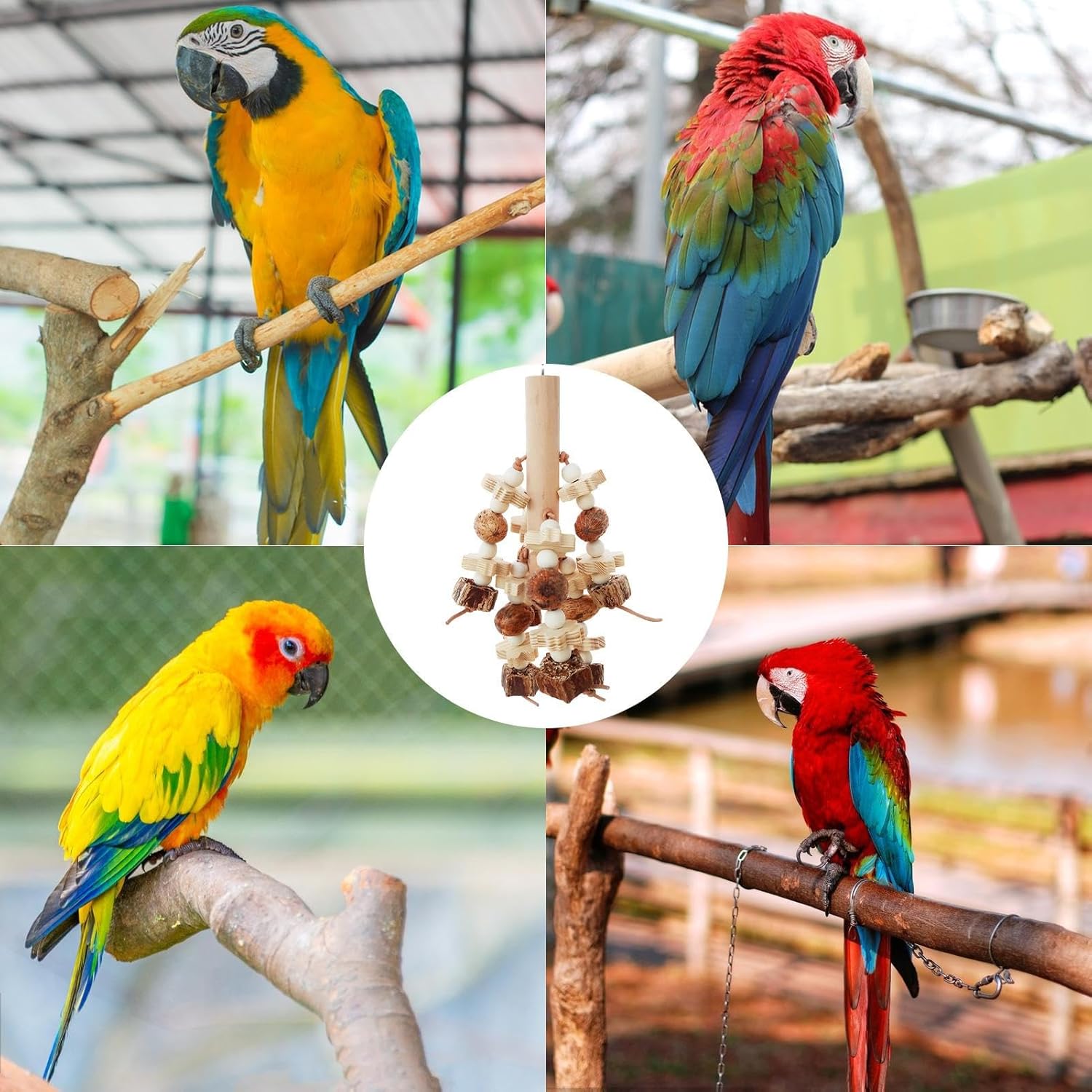 Das Kauspielzeug ist mit einer Kletterstruktur gestaltet, die das natürliche Nageverhalten anregt. Es bietet Vögeln eine anregende Möglichkeit, fit zu bleiben und geistig ausgeglichen zu sein, was eine ruhige und glückliche Spielatmosphäre schafft.