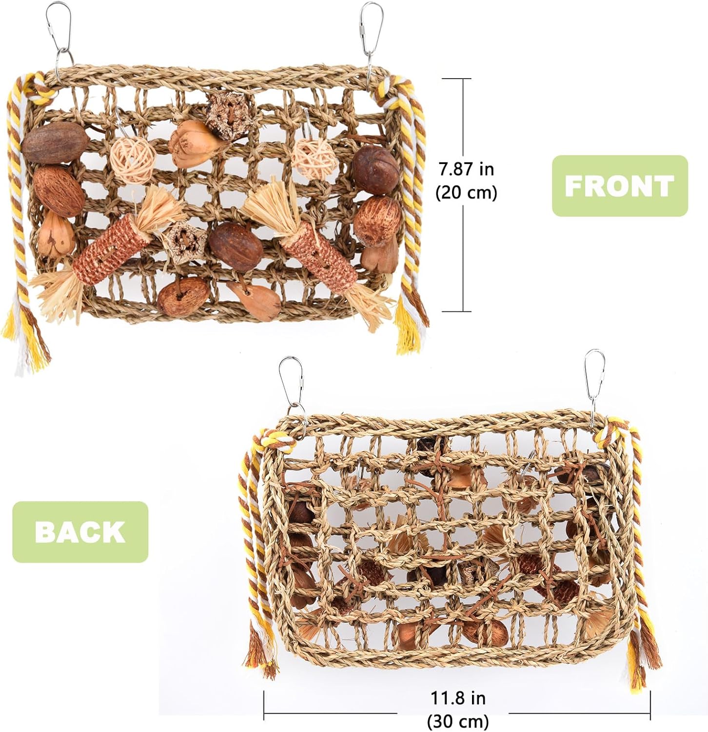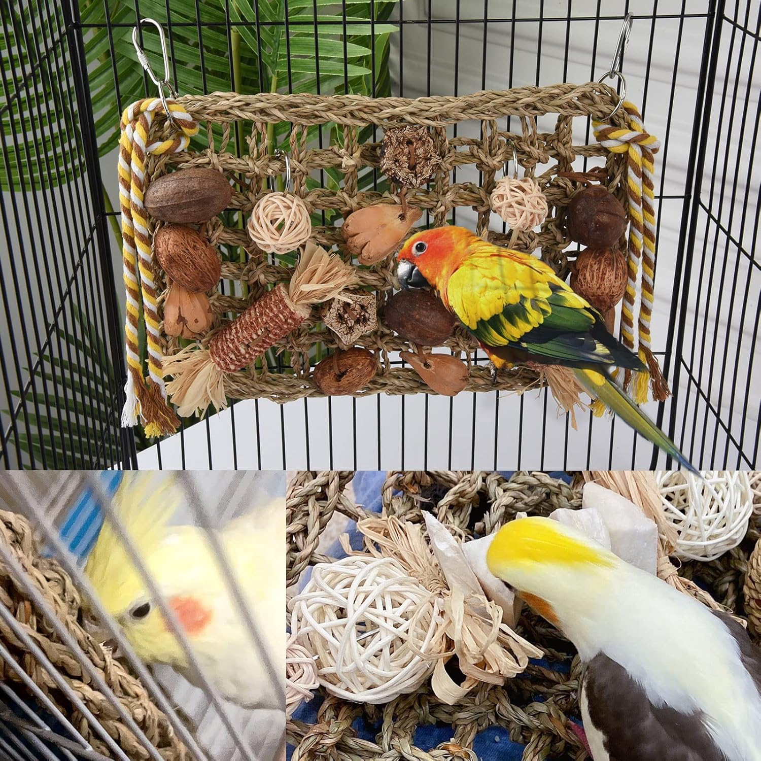 Verbesserte größere Größe: Die Größe des Kauspielzeugs für Vogelpapageien beträgt 30 x 20 cm, was Ihren Papageien viel Platz zum Klettern und Kauen bietet. Die Gesamtlänge lässt sich oben mit einer Baumwollkordel verstellen, geeignet für große Graupapageien, Nymphensittiche und mittelgroße Papageien