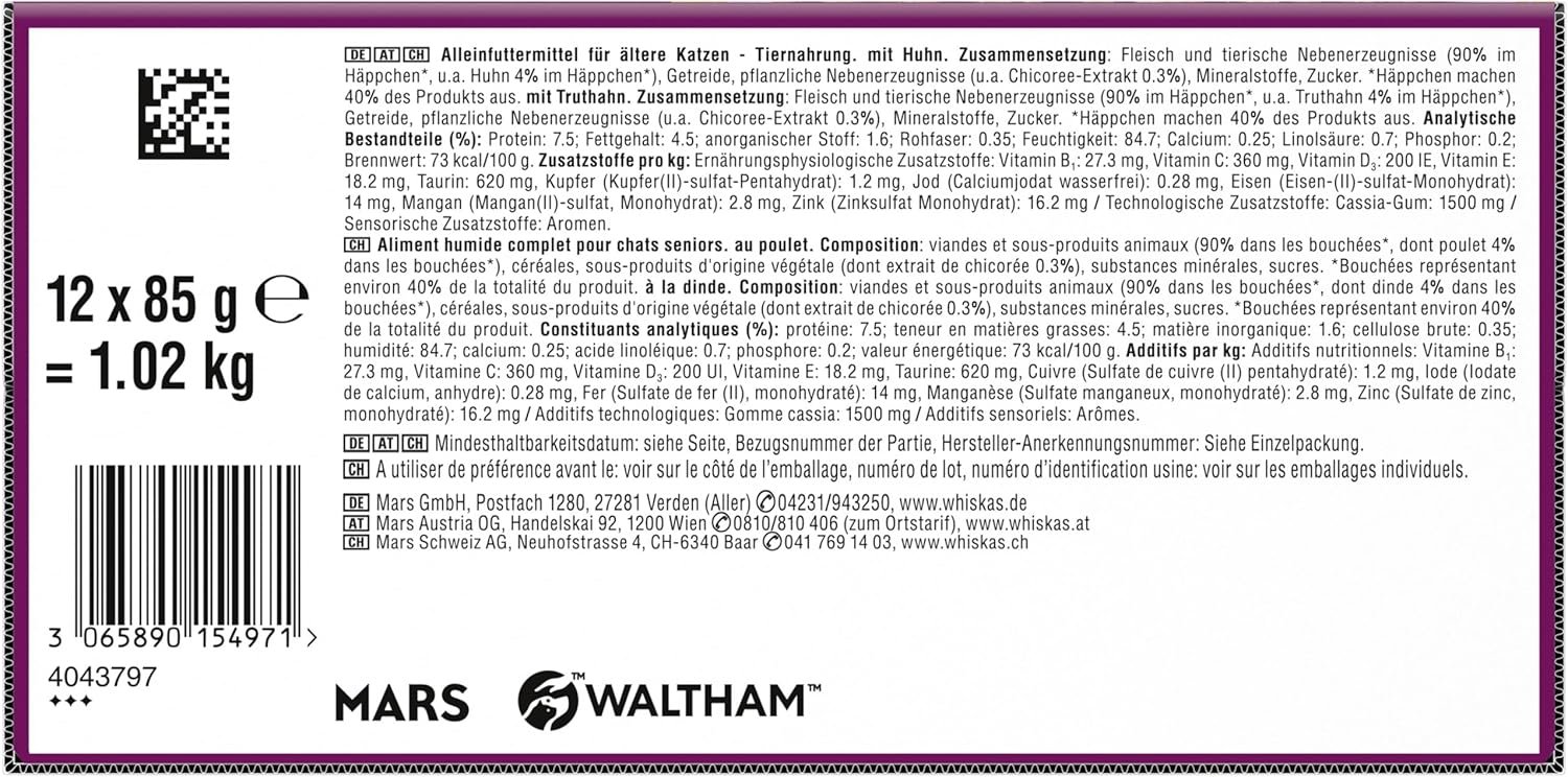 Jedes köstliche Rezept enthält 100 % hochwertige Zutaten und deckt alle täglichen Bedürfnisse Ihrer Katze ab 11 Jahren ab