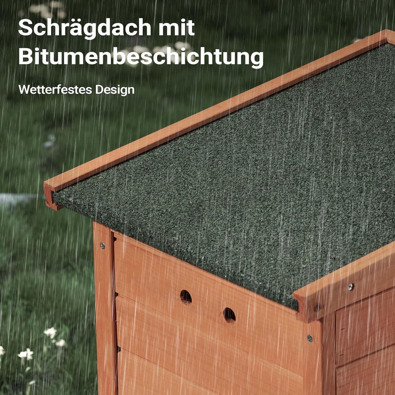Robuste Konstruktion: Das Gehäuse besteht aus langlebigem Fichtenholz und verfügt über ein mit Bitumen abgedichtetes Dach, das einen dauerhaften Schutz vor Witterungseinflüssen bietet