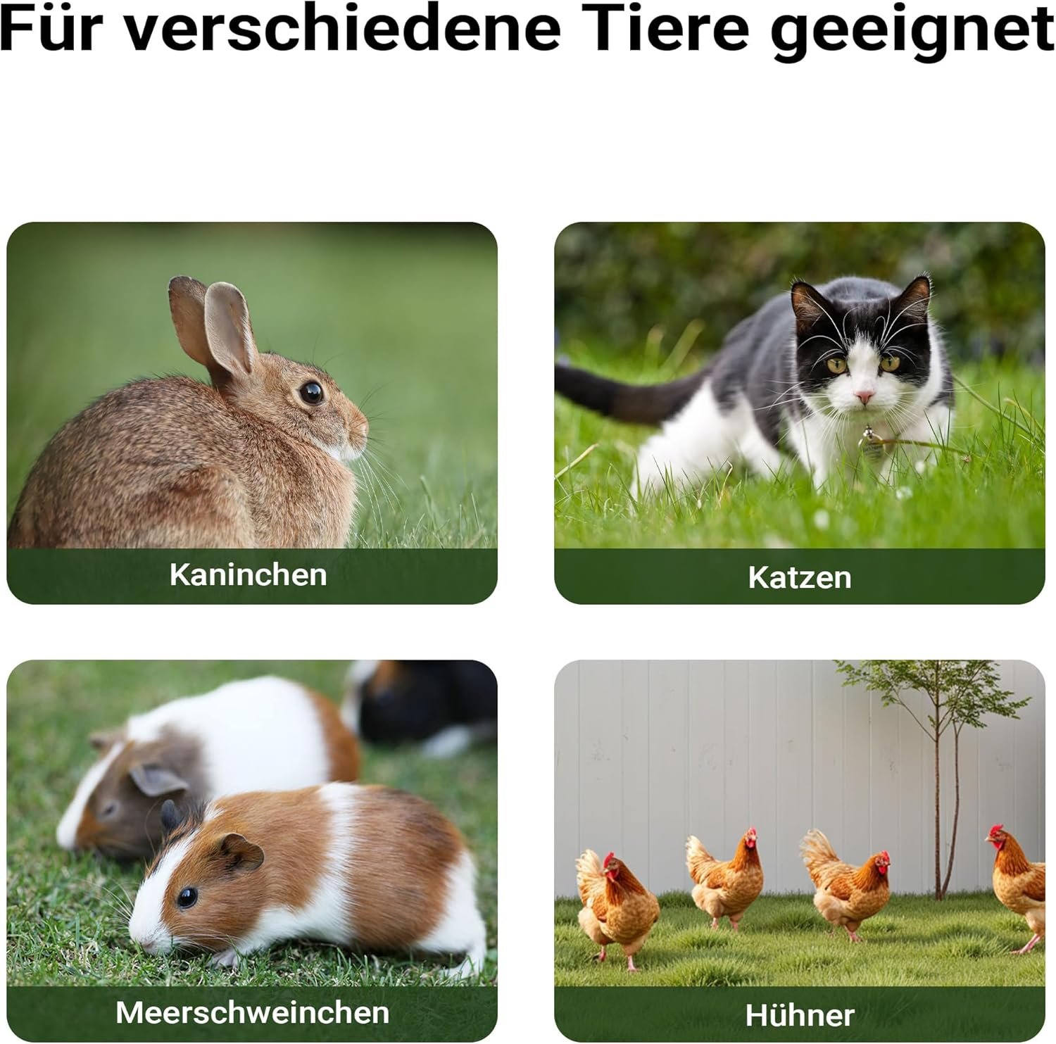 Hinweis: Der Stall ist nicht für die dauerhafte Unterbringung von Tieren konzipiert, sondern ein zusätzlicher Schlafplatz bzw. Unterschlupf. Bitte informieren Sie sich vor der Anschaffung des jeweiligen Tieres über seine artgerechten Haltungsbedingungen und halten Sie diese ein.
