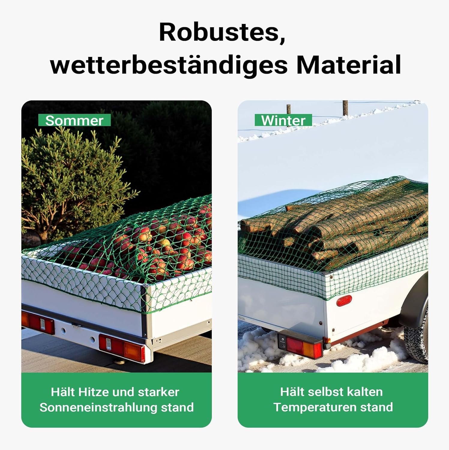 [Safety guaranteed] – Aus witterungsbeständigem PP-Material und robustem Zugseil für zuverlässige Ladungssicherung