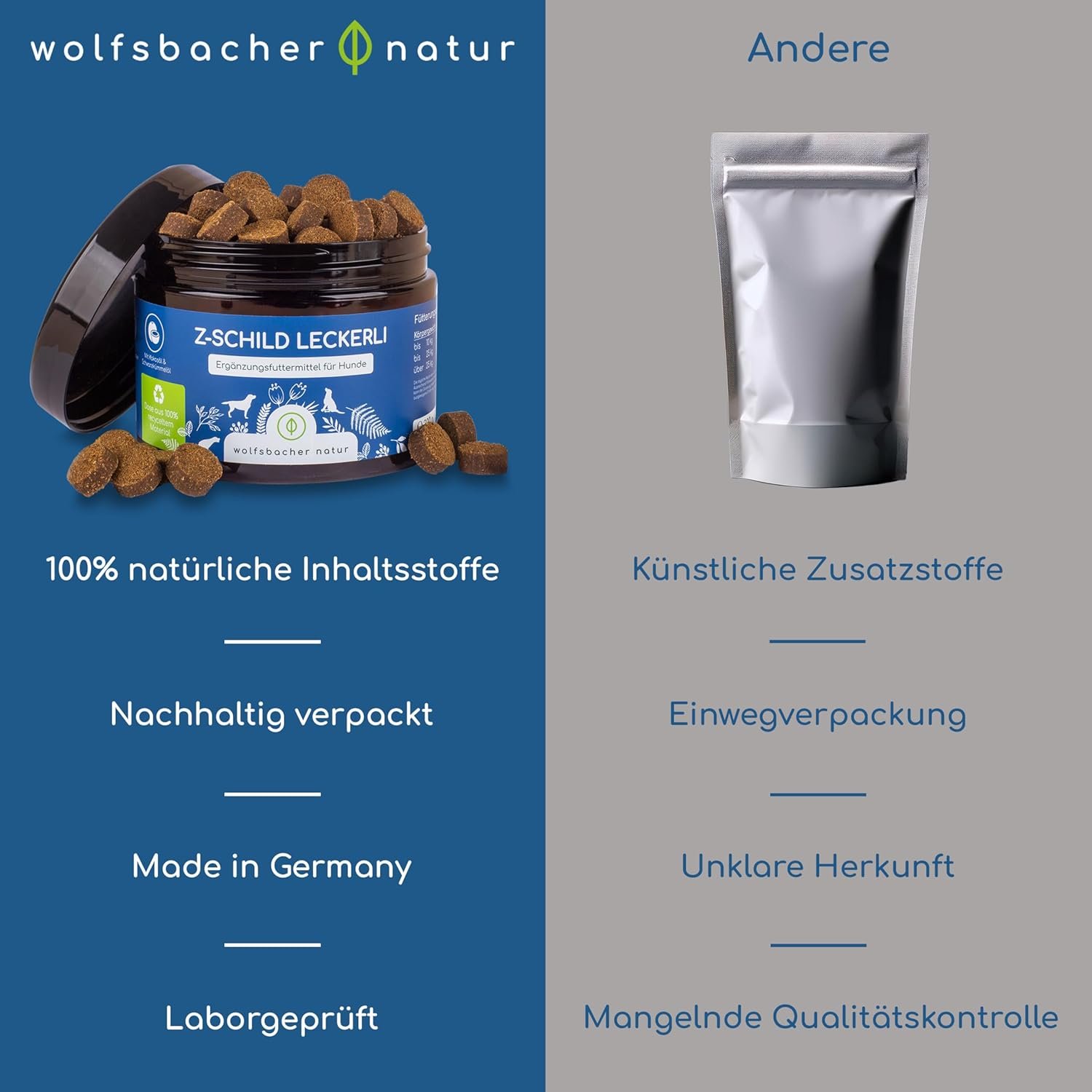 Für mehr Schutz und Sicherheit: Unsere natürlichen Superfood-Snacks sind nicht nur lecker, sondern auch gut für Hunde und Menschen, die viel Zeit in der Natur verbringen. Sie enthalten eine einzigartige Kombination aus Schwarzkümmelöl, Kokosöl und Bierhefe. Denn ein guter Schutz kann erheblich zum Wohlbefinden Ihres Hundes beitragen.