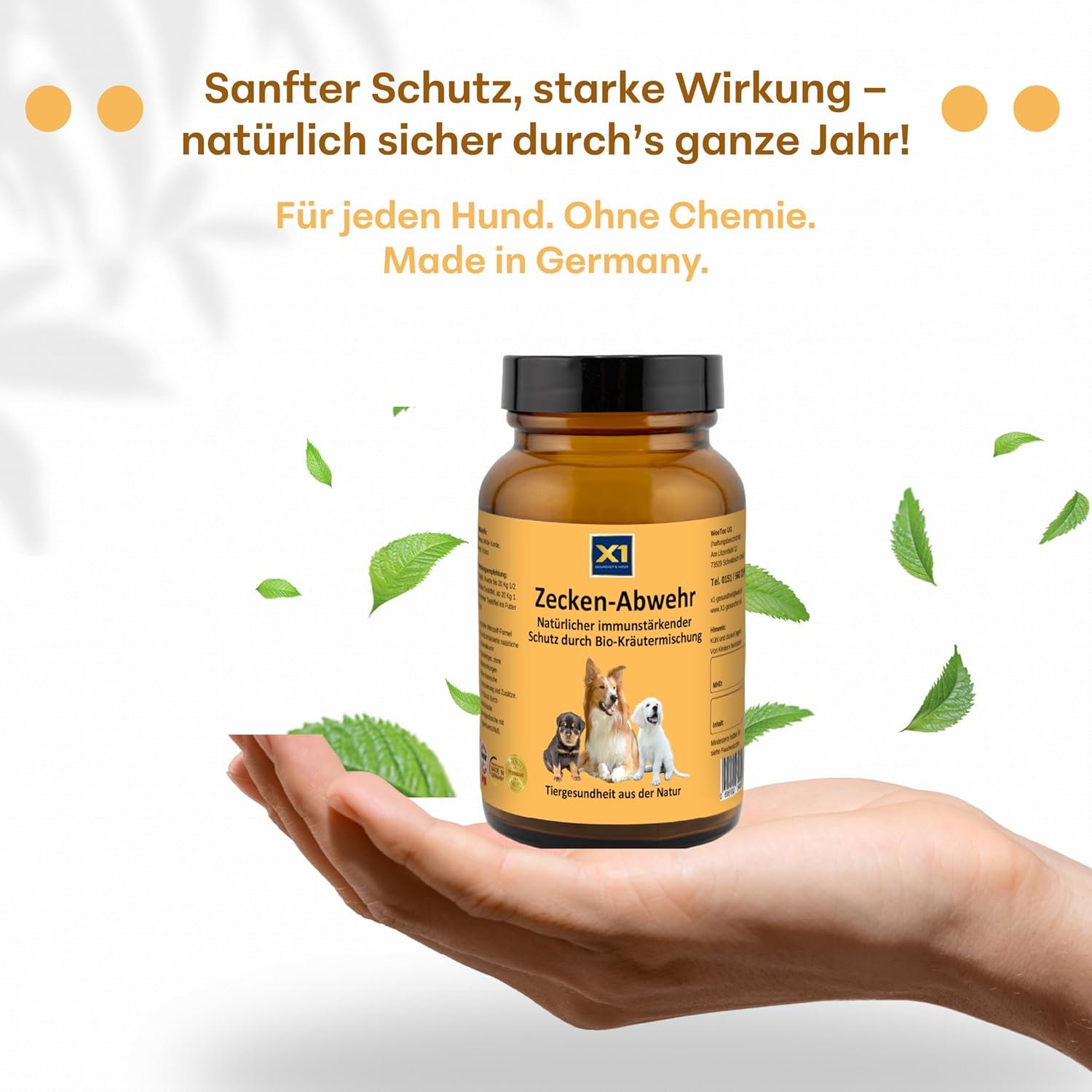 Natürliche Abwehr für Hunde: Die X1-Kräutermischung stärkt das Immunsystem und fördert ein Hautmilieu, das die natürliche Abwehrkraft gegen Zecken unterstützt. Ein sanftes, chemiefreies Futterergänzungsmittel.
