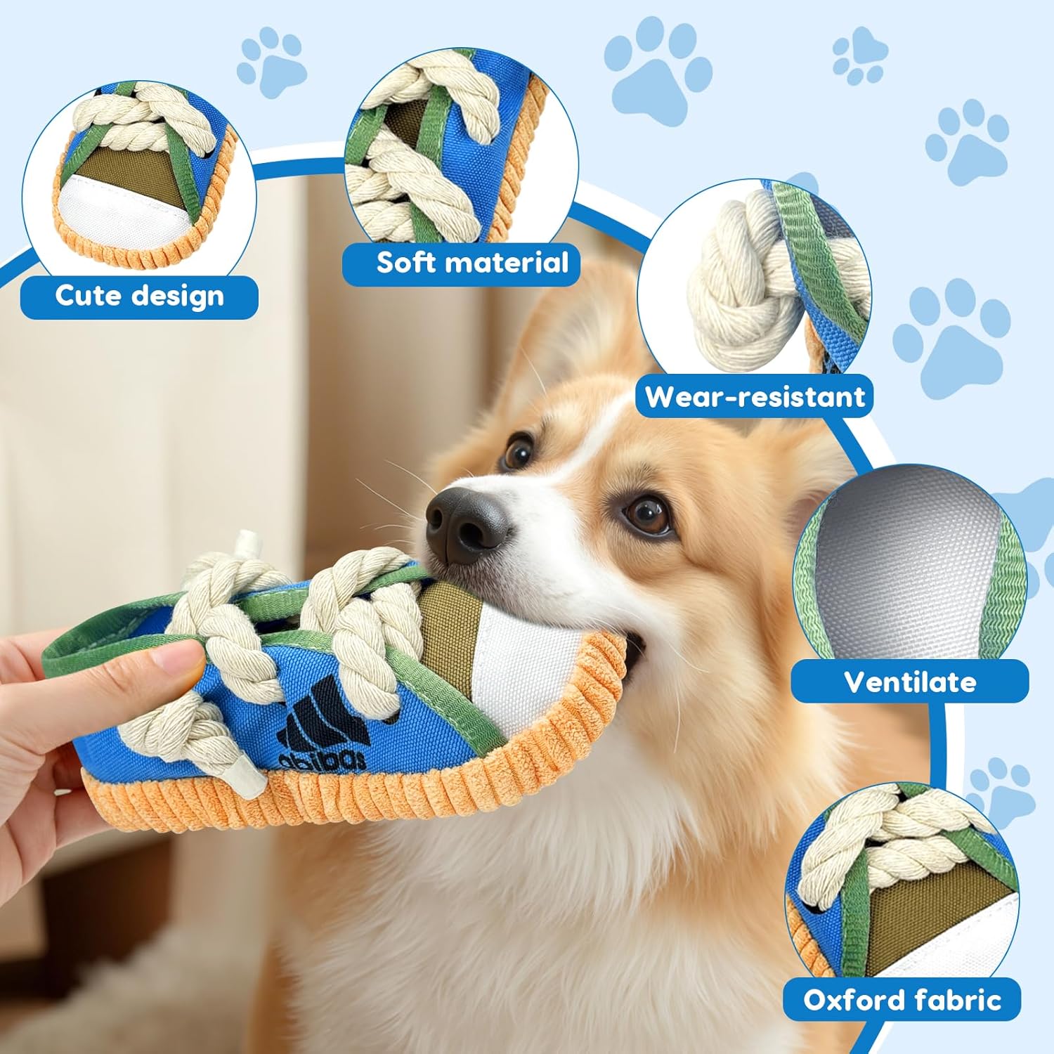 Unser Hundespielzeug im Schuhdesign vereint weiches Plüschmaterial, robustes Kauseil und interaktive Elemente in einem Produkt. Es wurde speziell entwickelt, um kleine Hunde geistig und körperlich zu beschäftigen und gleichzeitig Stress und Langeweile zu reduzieren.