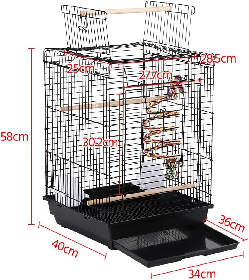 Sicherer Ruhebereich: Kleine Vögel können besonders in der Eingewöhnungsphase sehr vorsichtig und scheu sein. Dieser Vogelkäfig mit einer Größe von 40 x 40 x 58 (L x B x H) bietet eine komfortable und sichere Ruhezone für kleine/mittlere Vögel wie Kanarienvögel, Papageien oder Unzertrennliche