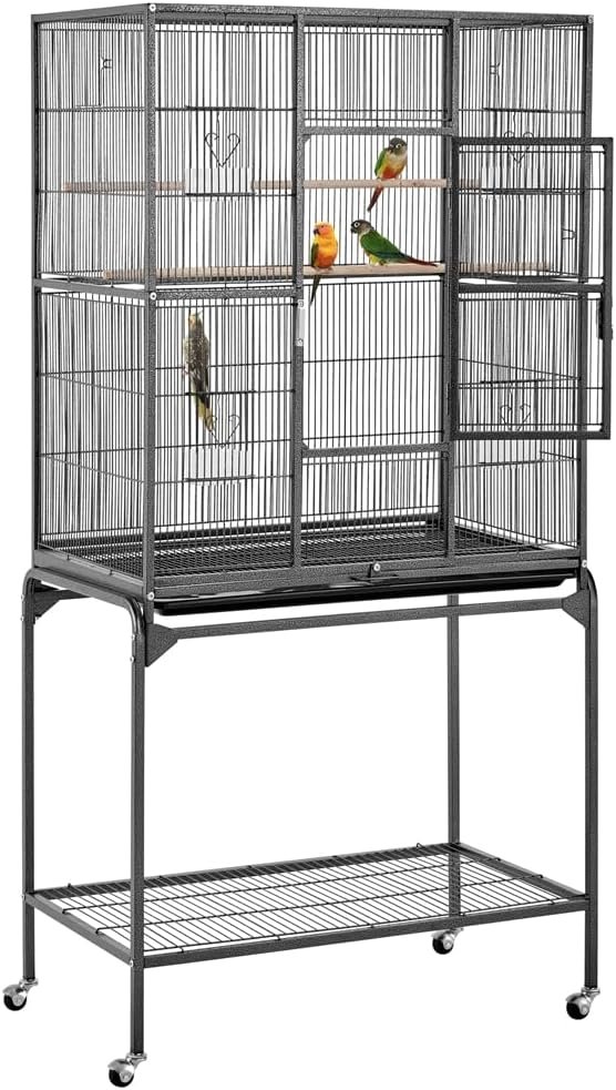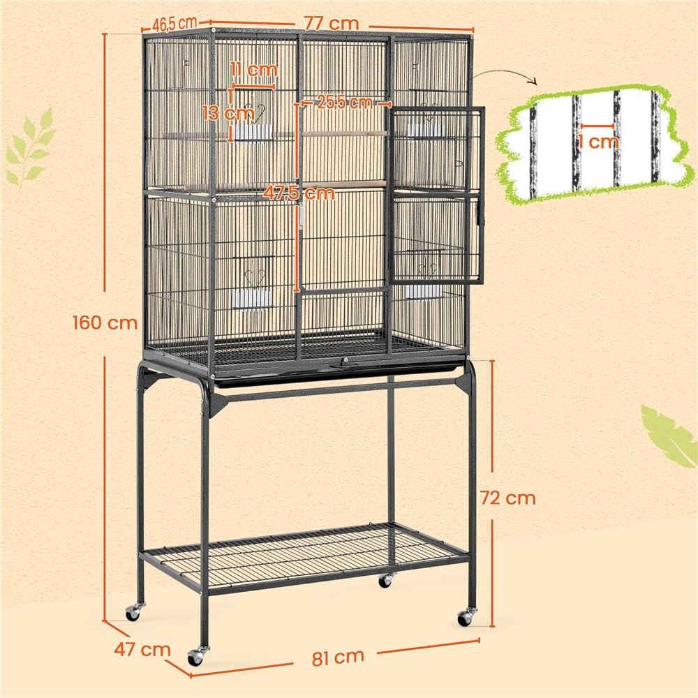 SAFETY FOR YOUR BIRDS – The 10mm wide pole spacing prevents birds from getting trapped. This makes the cage suitable for several finches, canaries, budgies but also larger birds such as cockatiels