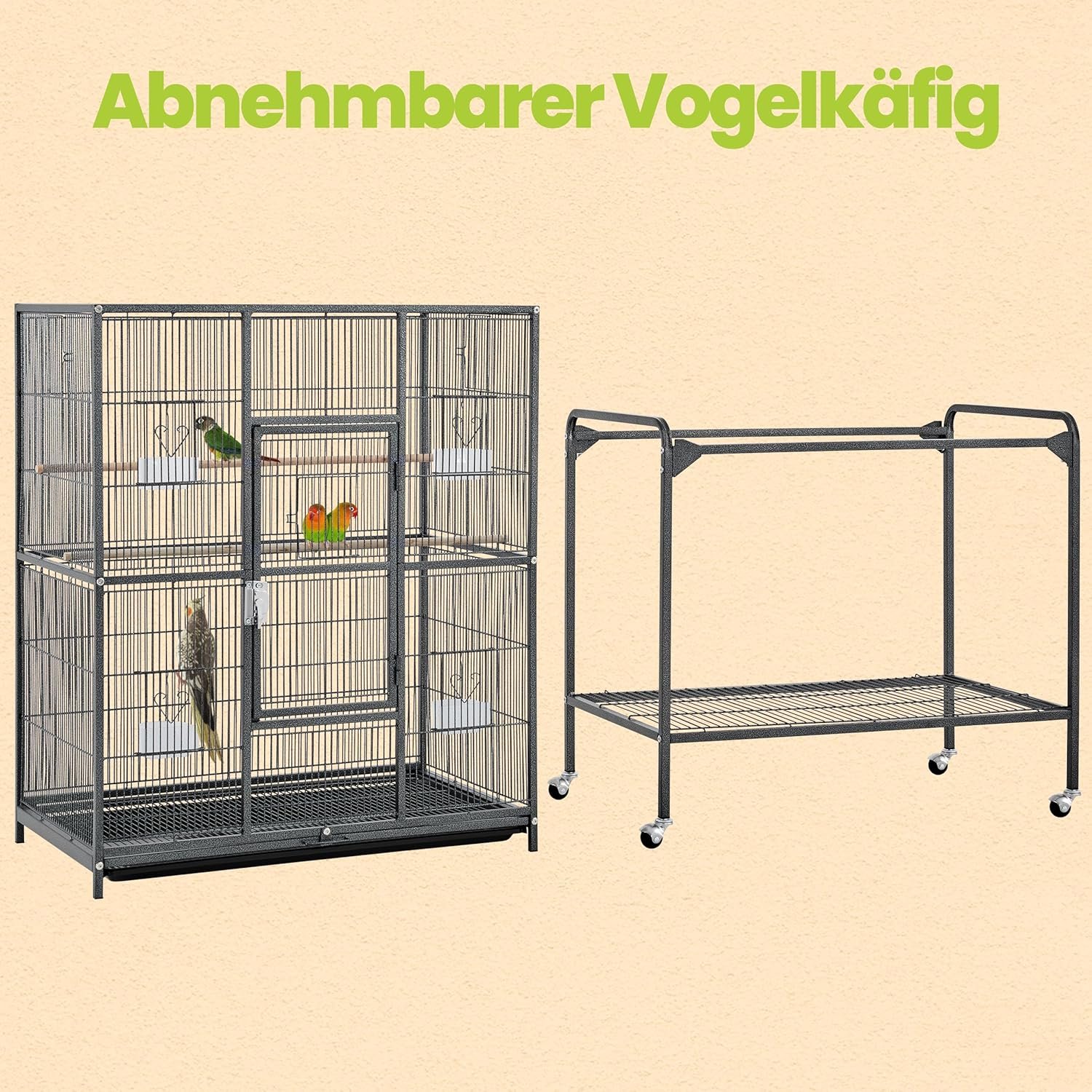 4 strong swivel castors help you move silently, making the bird’s space flexible.