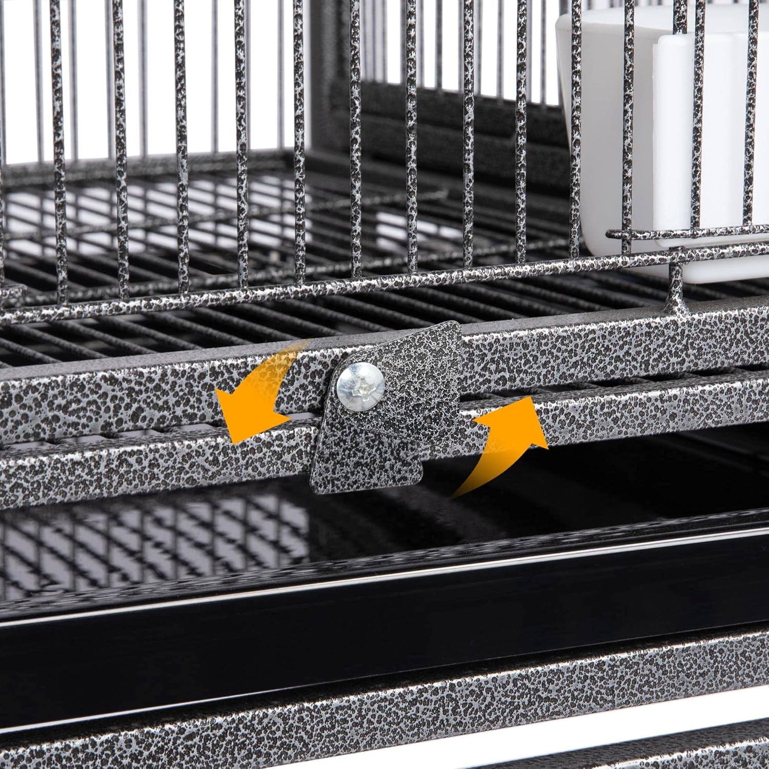 Abnehmbarer Boden: Auf vier um 360° drehbaren Rädern (zwei davon mit Bremsen) montiert, lässt sich dieser breite Vogelkäfig einfach aufrollen. Der obere Käfig kann dank der abnehmbaren Konstruktion separat verwendet werden.