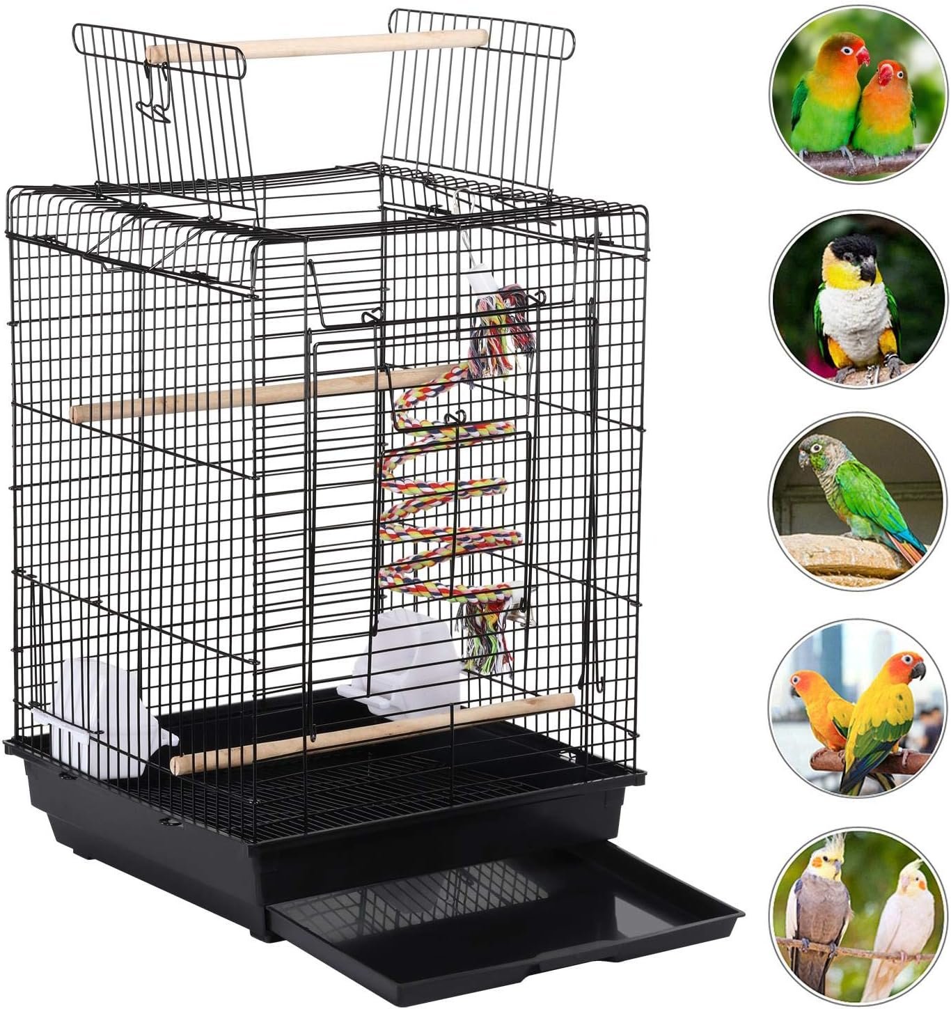 Schmutzauffangwanne & Schmutzwanne: Dieser Vogelkäfig ist mit einer Schmutzauffangwanne ausgestattet und verfügt über eine ausziehbare Schmutzwanne, wodurch diese Vogelvoliere leicht und einfach zu reinigen ist