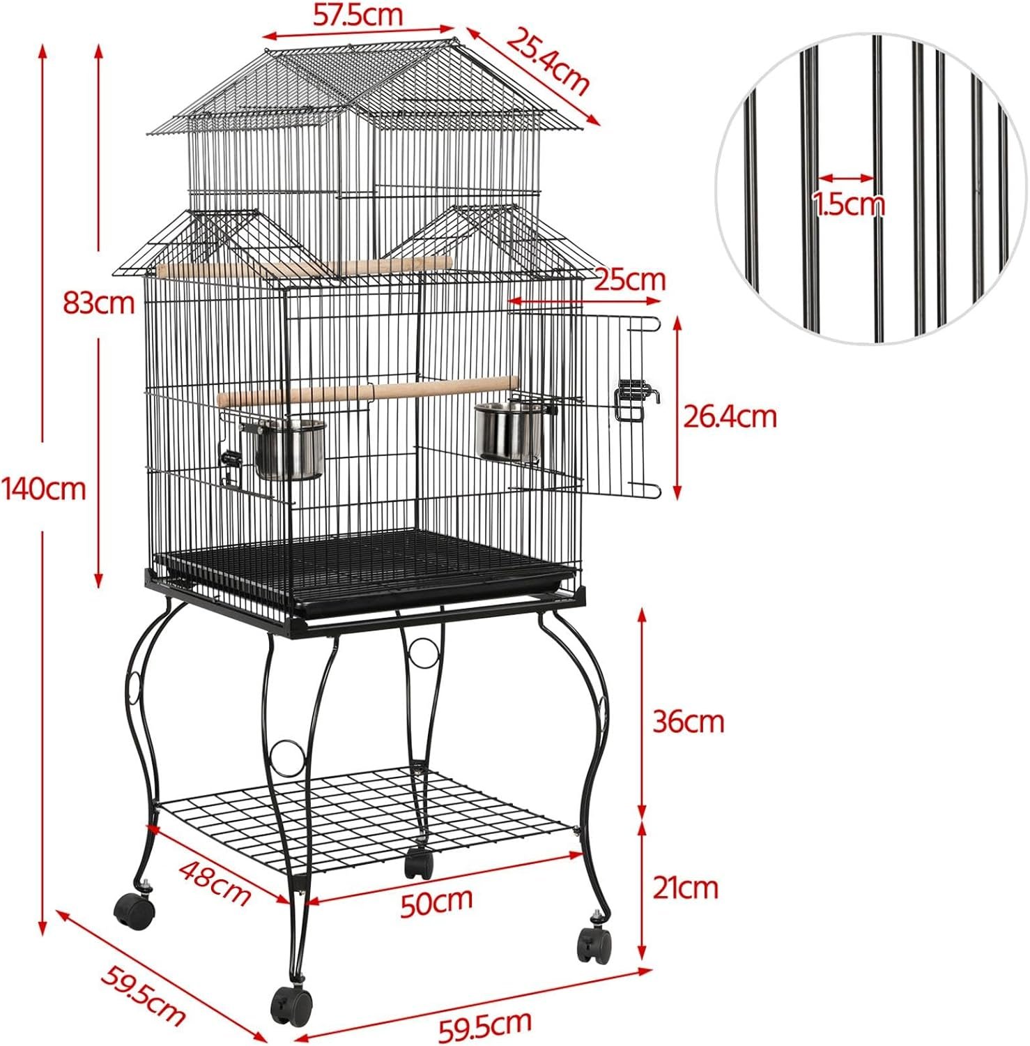 Praktisches und zerlegbares Design mit einer Größe von 59 x 59 x 139,5 cm ist ideal für Wellensittiche, Turteltauben, Tauben, Nymphensittiche, Papageien, Sittiche.