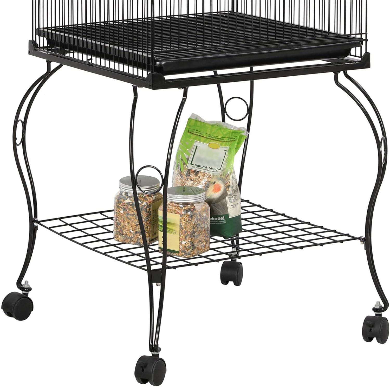 Vier Sicherheitsrollen helfen bei der täglichen Bewegung und zwei mit Bremsen machen den Käfig stabil und sicher.